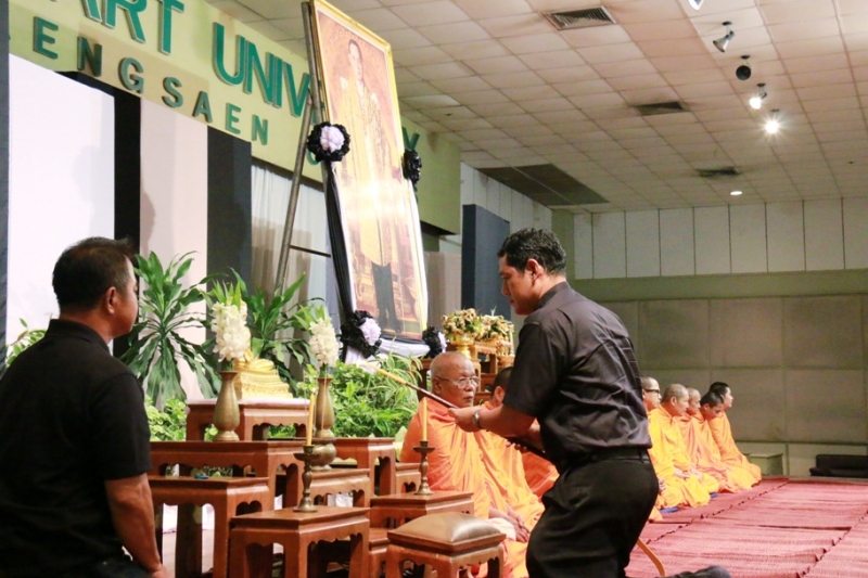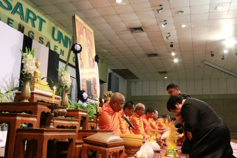 วันที่ 10 พฤศจิกายน 2559 คณะเกษตร กำแพงแสน จัดพิธี ตักบาตรถวายเป็นพระราชกุศล แด่ พระบาทสมเด็จพระปรมินทรมหาภูมิพลอดุลยเดช ด้วยรำลึกในพระมหากรุณาธิคุณหาที่สุดมิได้ โดยมีผู้บริหาร คณาจารย์ นิสิต จากคณะและหน่วยงานต่างๆ ร่วมในพิธีอย่างพร้อมเพรียงกัน ณ ห้องคอนเวนชั่น อาคารศูนย์มหาวิทยาลัยเกษตรศาสตร์ วิทยาเขตกำแพงแสน