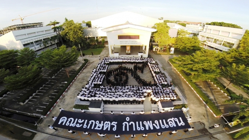 วันที่ 22 พฤศจิกายน 2559 คณะเกษตร กำแพงแสน รวมพลังแห่งความภักดี จัดพิธีแปรอักษรหมายเลข ๙ ถวายความอาลัยพ่อหลวง เพื่อน้อมรำลึกในพระมหากรุณาธิคุณและแสดงความอาลัยถวายแด่ พระบาทสมเด็จพระปรมินทรมหาภูมิพลอดุลยเดช นำโดย ผู้ช่วยศาสตราจารย์สิรินทร์พร สินธุวณิชย์ รักษาการแทนคณบดีคณะเกษตร กำแพงแสน พร้อมด้วยคณะผู้บริหาร คณาจารย์ บุคลากร และนิสิต กว่า 500 คน โดยแปรอักษรหมายเลข ๙ ในรูปแบบขาว-ดำ (ผู้บริหาร คณาจารย์ และบุคลากร ชุดดำ, นิสิต ชุดนิสิต) รวมพลังแห่งความภักดี ร่วมกันร้อง เพลงสรรเสริญพระบารมี พร้อมคนไทยทั่วประเทศ จากนั้นร้องเพลง ผู้ปิดทองหลังพระ และ พ่อแห่งแผ่นดิน ณ ลานหน้าคณะเกษตร กำแพงแสน