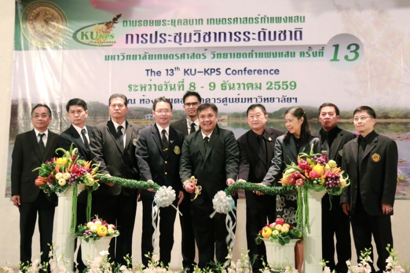 วันที่ 8-9 ธันวาคม 2559 บุคลากร คณะเกษตร กำแพงแสน ส่งผลงานวิจัยเข้าร่วมนำเสนอในการประชุมวิชาการระดับชาติ ครั้งที่ 13 ซึ่งจัดขึ้นโดย มหาวิทยาลัยเกษตรศาสตร์ วิทยาเขตกำแพงแสน ในสาขาพืชและเทคโนโลยีชีวภาพ สาขาสัตว์และสัตวแพทย์ และสาขาส่งเสริมการเกษตร ทั้งภาคบรรยาย และภาคโปสเตอร์ อีกทั้งมีการจัดเสวานาในสาขาต่างๆ โดยจะจัดขึ้นทุกปีในงานเกษตรกำแพงแสน ณ มหาวิทยาลัยเกษตรศาสตร์ วิทยาเขตกำแพงแสน