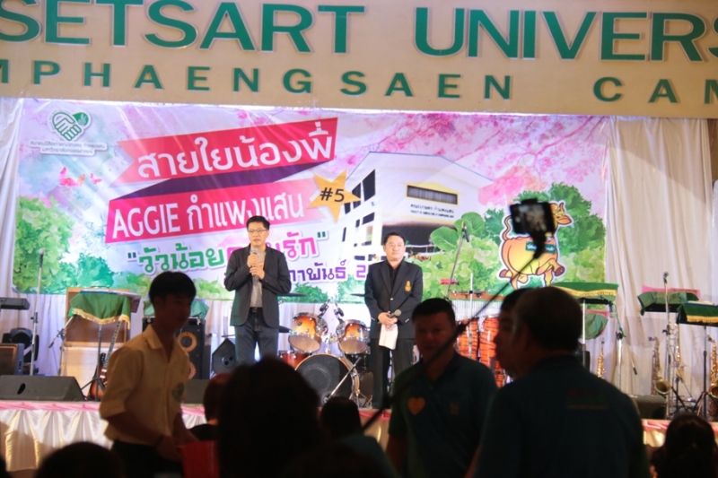 วันที่ 25 กุมภาพันธ์ 2560 สมาคมนิสิตเก่าคณะเกษตร กำแพงแสน จัดโครงการสายใยน้องพี่ AGGIE กำแพงแสน ครั้งที่ 5 ตอน วัวน้อยคอยรัก ช่วงเช้ามีกิจกรรมสักการะพระพิรุณทรงนาค ร่วมกิจกรรมจูงมือลูก จับมือหลาน แวะสะดือ ดูผัก จับวัว ซึ่งเป็นกิจกรรมทัวร์คณะฯ จากนั้นช่วงสายๆ ไปยังบริเวณงาน ณ ห้องคอนเวนชั่น อาคารศูนย์มหาวิทยาลัยเกษตรศาสตร์ วิทยาเขตกำแพงแสน มีกิจกรรมถ่ายภาพร่วมกัน และจับจ่ายซื้อสินค้า ผลิตผลและผลิตภัณฑ์ของคณะฯ เมื่อถึงเวลา 11.10 น. คุณเอนก ปิ่นวนิชย์กุล นายกสมาคมนิสิตเก่าคณะเกษตร กำแพงแสน กล่าวต้อนรับและบรรยายวัตถุประสงค์ของงาน ร่วมชม presentation จากนั้นได้เรียนเชิญ รศ.ดร.ยงยุทธ โอสถสภา อาจารย์อาวุโส กล่าวให้โอวาทแก่นิสิตเก่าและนิสิตปัจจุบัน พิธีมอบโล่ให้กับนิสิตเก่าดีเด่น การประมูลของจากน้อง AGGIE ปัจจุบัน รับประทานอาหารร่วมกัน และกิจกรรมอีกมากมาย มีนิสิตเก่ารุ่นต่างๆ มาร่วมงานกันอยากสนุกสนานและอบอุ่น