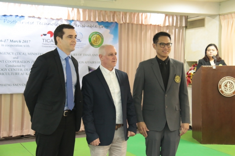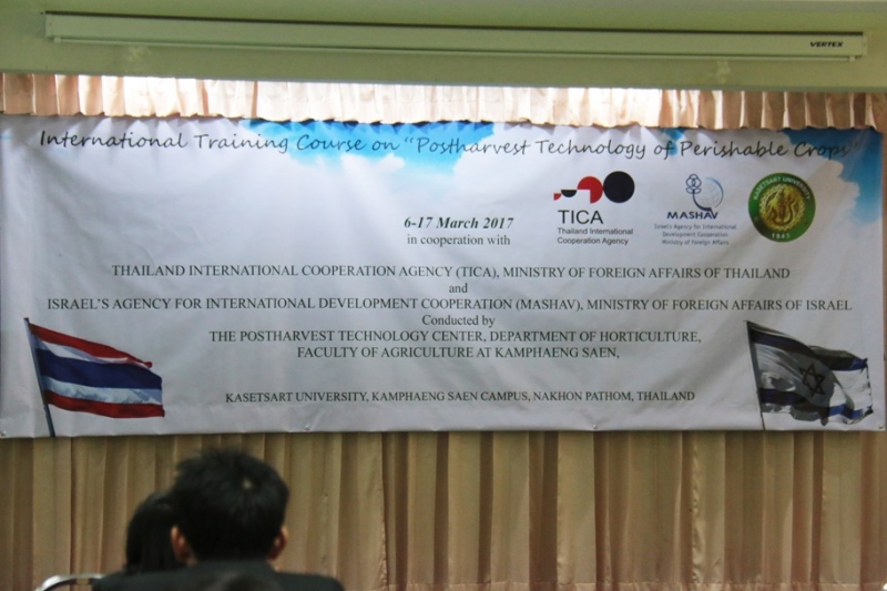 ศูนย์เทคโนโลยีหลังการเก็บเกี่ยว คณะเกษตร กำแพงแสน และ งานวิเทศ ประชาสัมพันธ์ และชุมชนสัมพันธ์ กองบริหารทั่วไป มหาวิทยาลัยเกษตรศาสตร์ วิทยาเขตกำแพงแสน ได้มีการประสานงานในการร่างหลักสูตรฝึกอบรมนานาชาติ หลักสูตร Postharvest Technology of Perishable Crops ร่วมกับ กรมความร่วมมือระหว่างประเทศ กระทรวงการต่างประเทศ Israels Agency for International Development Cooperation (MASHAV) และ สถานเอกอัคราชทูตอิสราเอลประจำประเทศไทย ให้แก่ เจ้าหน้าที่จากประเทศกัมพูชา เมียนมา ลาว ติมอร์-เลสเต เวียดนาม ฟิลิปปินส์ และ ไทย จำนวน 22 คน ระหว่างวันที่ 5-18 มีนาคม 2560 ณ มหาวิทยาลัยเกษตรศาสตร์ วิทยาเขตกำแพงแสน อำเภอกำแพงแสน จังหวัดนครปฐม และได้มีพิธีเปิดเมื่อวันที่ 6 มีนาคม 2560 ณ ศูนย์ปฏิบัติการวิจัยและเรือนปลูกพืชทดลอง คณะเกษตร กำแพงแสน มหาวิทยาลัยเกษตรศาสตร์ วิทยาเขตกำแพงแสน