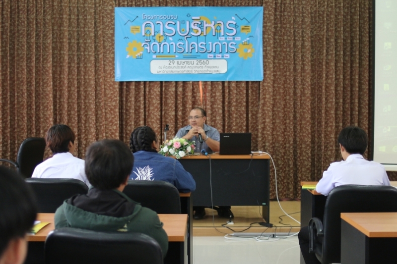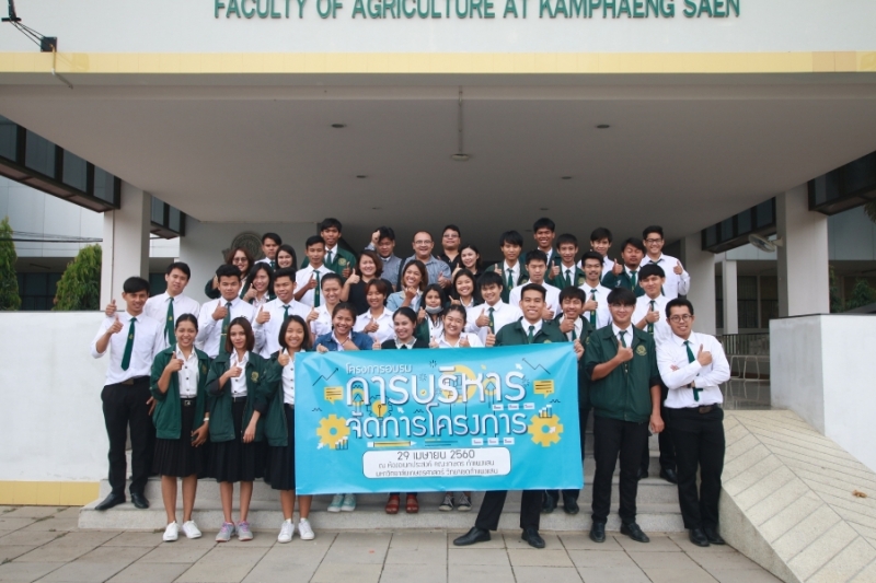 วันที่ 29 เมษายน 2560 คณะเกษตร กำแพงแสน จัดโครงการอบรม การบริหารจัดการโครงการ เพื่อให้นิสิตคณะเกษตร กำแพงแสน มีความรู้ความเข้าใจในการเขียนและจัดทำโครงการ การทำหนังสือราชการ ตลอดจนเอกสารใบสำคัญสำหรับการเบิกจ่ายในโครงการ ได้รับเกียรติจาก อาจารย์ ดร.ปิยะณัฏฐ์ ผกามาศ รักษาการแทนรองคณบดีฝ่ายกิจการนิสิต กล่าวเปิดโครงการ มีการบรรยายหัวข้อ การจัดทำโครงการและการประเมินผล โดย อาจารย์ ดร.อารีรัตน์ ภาคพิธเจริญ จากคณะศึกษาศาสตร์และพัฒนศาสตร์ กำแพงแสน และ หัวข้อ การเตรียมเอกสารการเบิกจ่ายเงินรายได้คณะเกษตร กำแพงแสน โดย เจ้าหน้าที่ฝ่ายการเงินและพัสดุ คณะเกษตร กำแพงแสน มีนิสิตเข้าร่วมโครงการ จำนวน 45 คน ณ ห้องอเนกประสงค์ คณะเกษตร กำแพงแสน