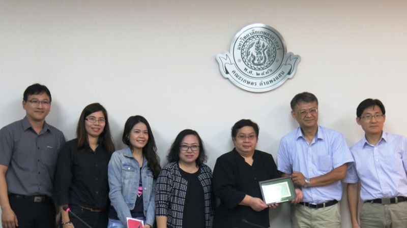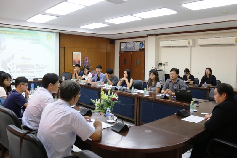 วันที่ 13 กรกฎาคม 2560 ผศ.ดร.สิรินทร์พร สินธุวณิชย์ รักษาการแทนรองคณบดีฝ่ายการศึกษา พร้อมด้วยคณาจารย์คณะเกษตร กำแพงแสน ให้การตอนรับ อาจารย์และนิสิต จำนวน 21 คน จาก National Chung Hsing University ประเทศไต้หวัน ในโครงการแลกเปลี่ยนนิสิตกับมหาวิทยาลัยเกษตรศาสตร์ ซึ่งจะเข้ามาศึกษาเรียนรู้ด้านการเกษตร ณ คณะเกษตร กำแพงแสน ระหว่างวันที่ 12 - 19 ก.ค. 2560 นอกจากนี้ยังไปทัศนศึกษายังหน่วยงานเอกชนด้านการเกษตรและสถานที่ท่องเที่ยวเชิงเกษตรอีกด้วย