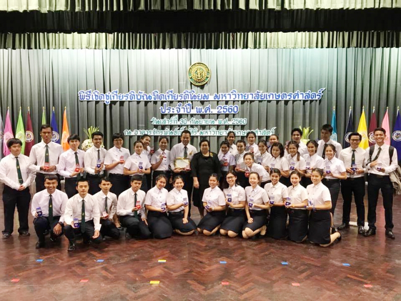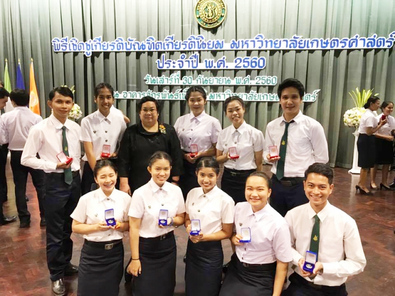วันที่ 30 กัยายน 2560 บัณฑิตคณะเกษตร กำแพงแสน ปีการศึกษา 2559 เข้ารับเหรียญในพิธีเชิดชูเกียรติบัณฑิตเกียรตินิยม มหาวิทยาลัยเกษตรศาสตร์ ประจำปี พ.ศ. 2560 มีบัณฑิตคณะเกตร กำแพงแสน ได้รับเกียรตินิยมอันดับ 1 จำนวน 19 คน และได้รับเกียรตินิยมอันดับ 2 จำนวน 35 คน รวม 54 คน โดยมี ผศ.ดร.สิรินทร์พร สินธุวณิชย์ ร่วมมอบเหรียญในพิธี ณ อาคารจักรพันธ์เพ็ญศิริ มหาวิทยาลัยเกษตรศาสตร์ บางเขน