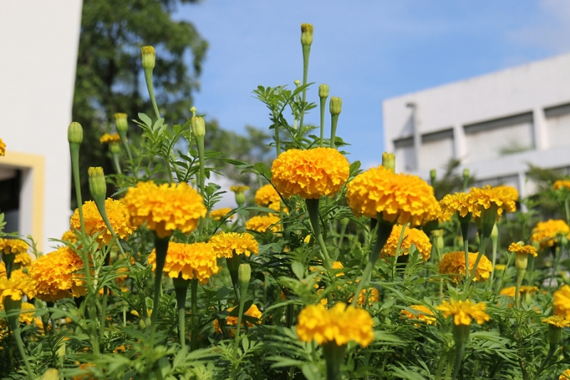 คณะเกษตร กำแพงแสน ประดับต้นดาวเรืองบริเวณลานด้านหน้าคณะ ซึ่งเป็นต้นดาวเรืองพันธุ์ลูกผสมเทวี จำนวน 1,500 ต้น เพื่อให้ออกดอกบานสะพรั่งในช่วงวันที่ 25-26 ตุลาคม 2560 ซึ่งเป็นช่วงพระราชพิธีถวายพระเพลิงพระบรมศพ ในหลวงรัชกาลที่ 9 ด้วยสำนึกในพระมหากรุณาธิคุณเป็นล้นพ้น อันหาที่สุดมิได้