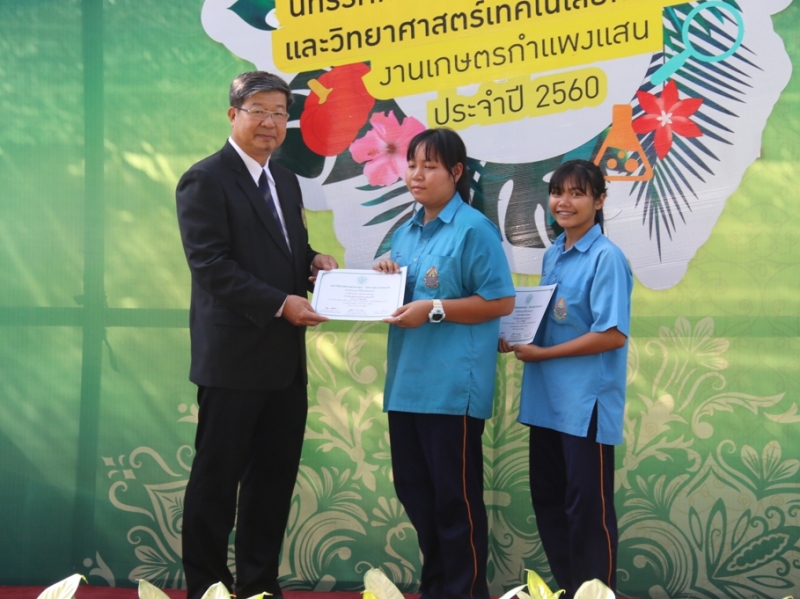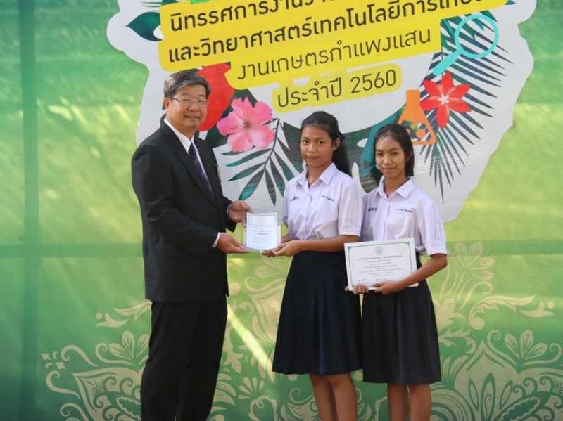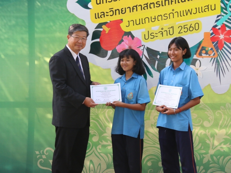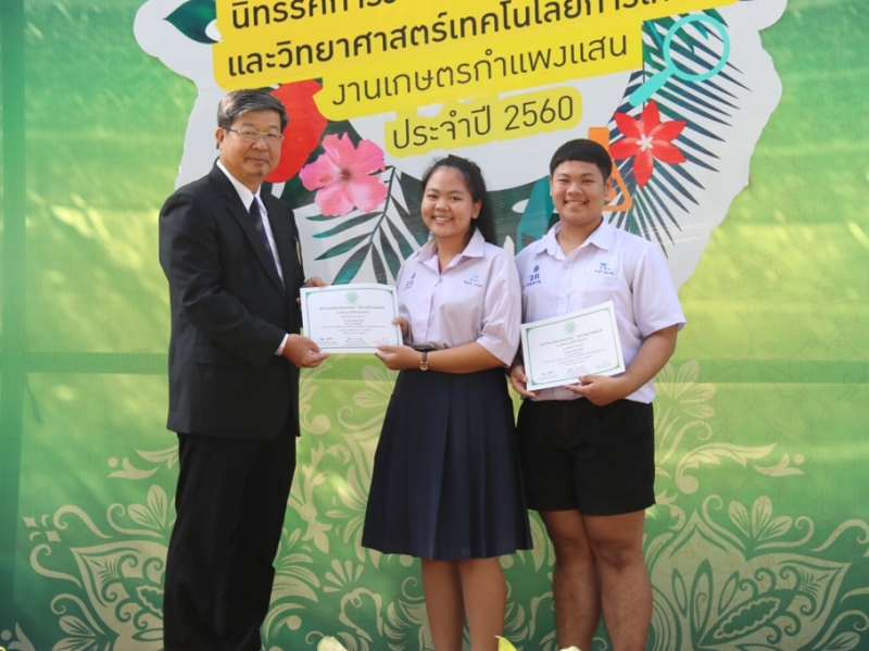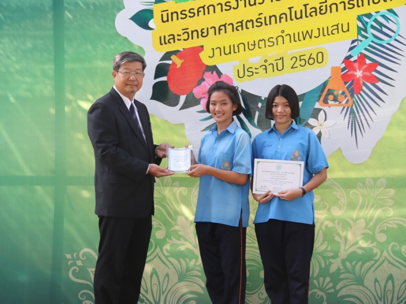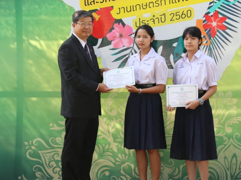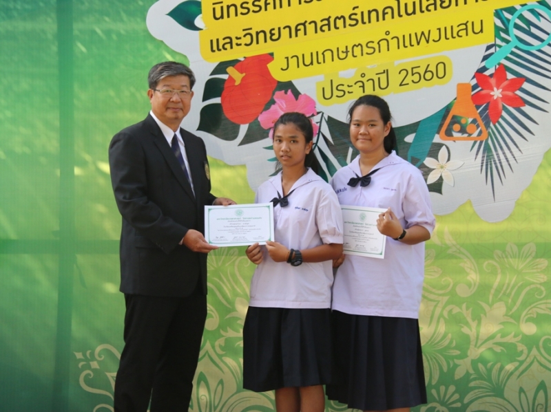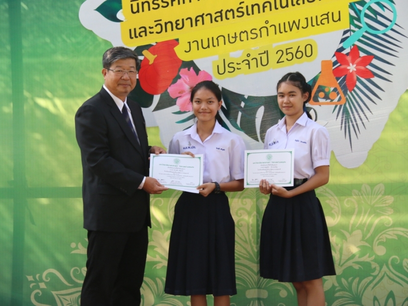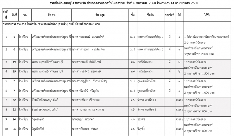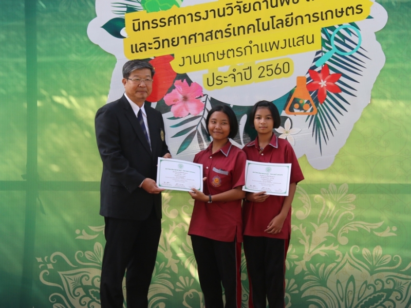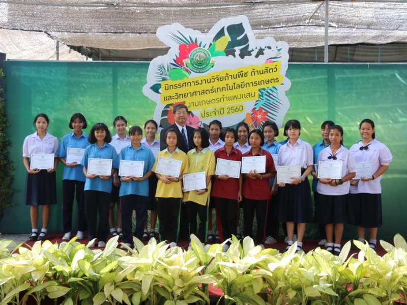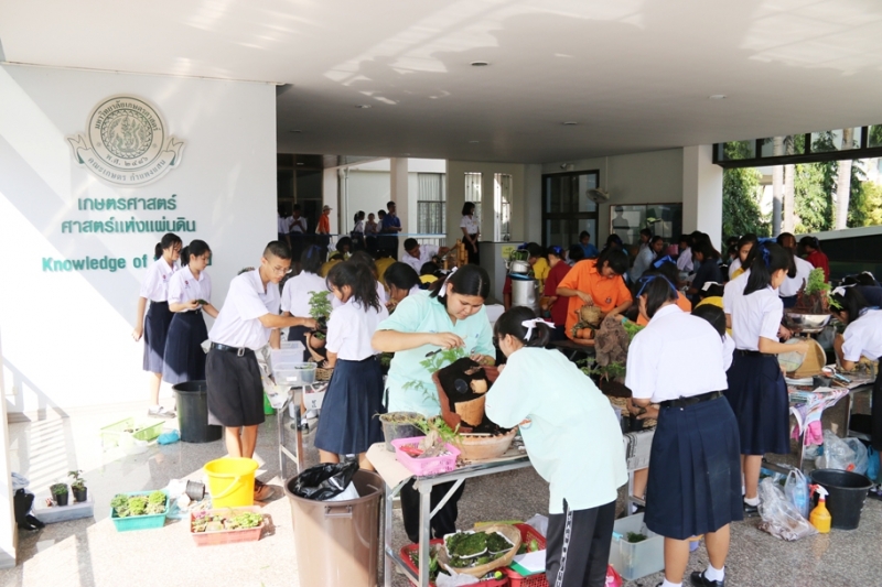 วันที่ 6 ธันวาคม 2560 ภาควิชาพืชสวน คณะเกษตร กำแพงแสน จัดการประกวดจัดสวนถาดในภาชนะ (สวนชื้น) ในหัวข้อ ตามรอยเท้าพ่อ ในระดับมัธยมศึกษาตอนต้น และระดับมัธยมศึกษาตอนปลาย ณ เต้นท์ประกวด หน้าคณะเกษตร กำแพงแสน มีโรงเรียนที่ส่งนักเรียนเข้าร่วมการแข่งขันจำนวน 35 โรงเรียน รวมทั้งสิ้น 68 ทีม โดยมีอาจารย์ของคณะเกษตร กำแพงแสน จำนวน 20 ท่าน ร่วมเป็นคณะกรรมการให้คะแนน เมื่อเสร็จสิ้นการประกวด รศ.ดร. ปภพ สินชยกุล คณบดีคณะเกษตร กำแพงแสน ให้เกียรติมอบโล่รางวัล ประกาศนีบัตร และทุนการศึกษา แก่โรงเรียนที่ชนะการประกวด ผลการประกวดมีดังนี้