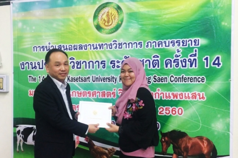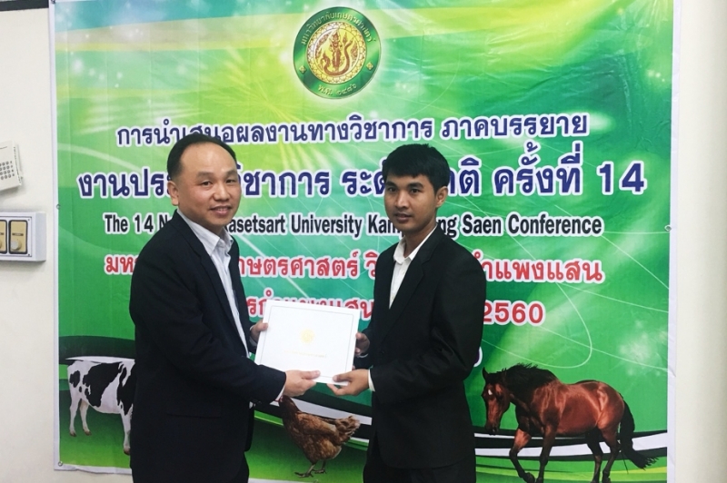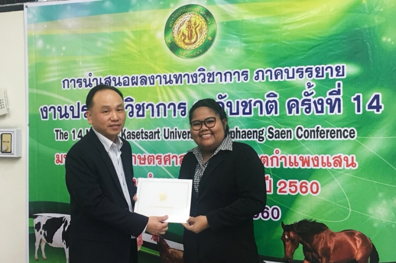 วันที่ 7 ธันวาคม 2560 เวลา 13.00-14.20 น. คณะเกษตร กำแพงแสน ร่วมดำเนินการจัดการนำเสนอผลงานทางวิชาการ สาขาสัตว์และสัตวแพทย์ ภาคบรรยาย ในการสัมมนาและประชุมวิชาการระดับชาติ ครั้งที่ 14 มีการนำเสนอผลงานทางวิชาการ จำนวน 5 เรื่อง โดยมี ผศ.น.สพ.ดร.เฉลิมเกียรติ แสงทองพินิจ อาจารย์ภาควิชาสัตวแพทยสาธารณสุขศาสตร์ คณะสัตวแพทยศาสตร์ วิทยาเขตบางเขน เป็นประธาน และได้รับเกียรติจาก ผศ.ดร.สิรินทร์พร สินธุวณิชย์ หัวหน้าภาควิชาสัตวบาล คณะเกษตร กำแพงแสน กล่าวเปิดงาน มีผู้สนใจร่วมฟังจำนวนมาก ณ ศูนย์เรียนรวม 2 ห้อง 205 มหาวิทยาลัยเกษตรศาสตร์ วิทยาเขตกำแพงแสน