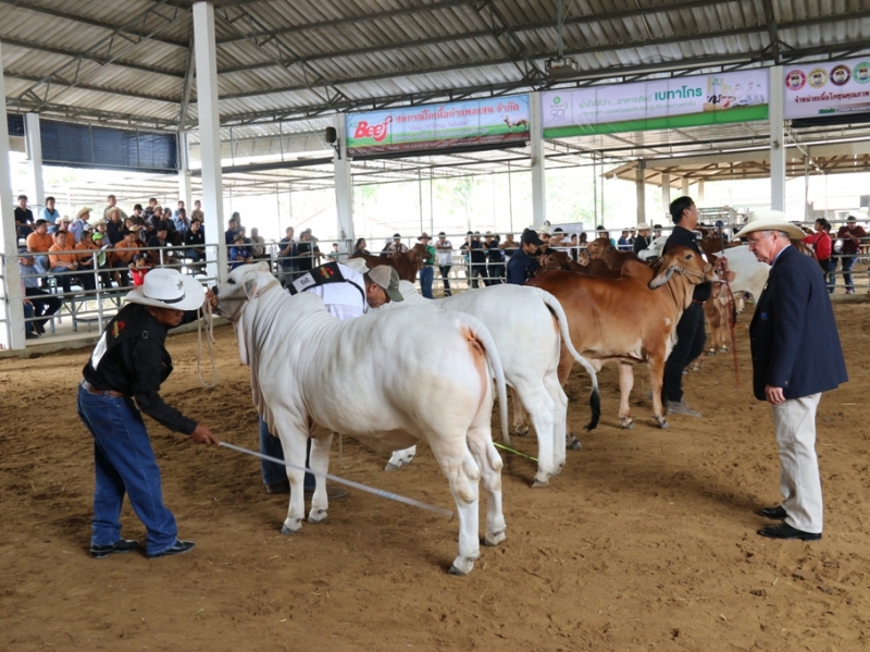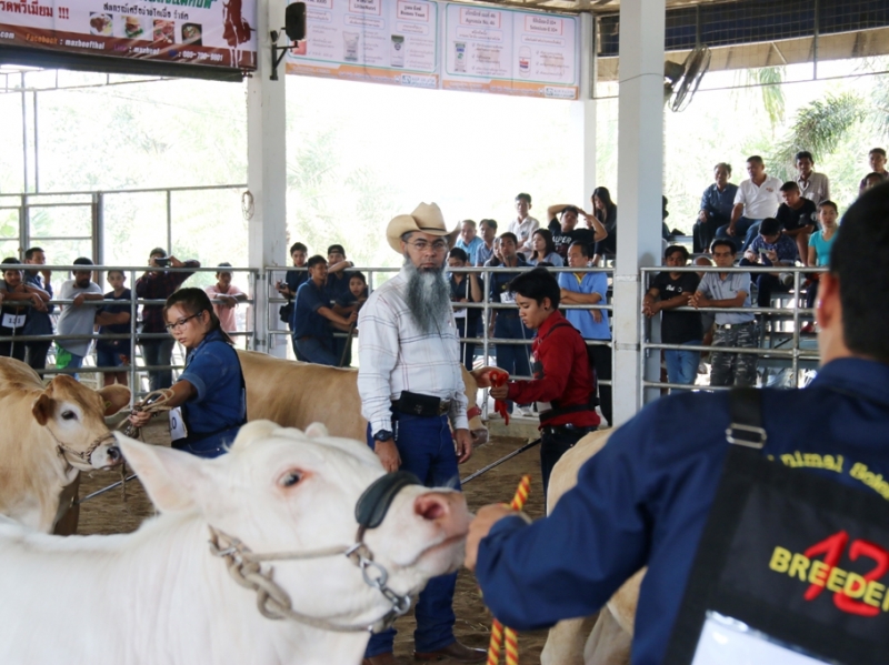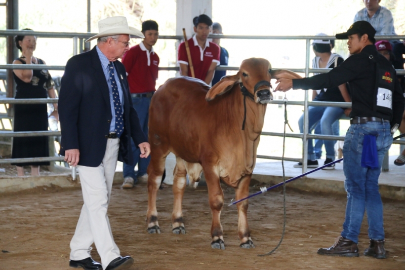 โคยอดเยี่ยม(Grand Champion) คือ MR. RKC ARNOLD 001 รุ่น senior#2 อายุ 32 เดือน จาก ร้อยเกาะแคทเทิล จ.สุราษฎร์ธานี (JM RANCH FITTING)