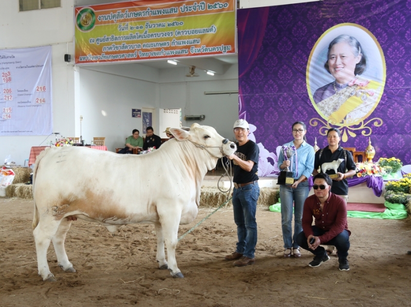 โคยอดเยี่ยม(Grand Champion) คือ B 5801 ล่ำ D1 M1169 รุ่น senior class อายุ 34.28 เดือน จาก ฟาร์ม เอฟ ที เอ ม.เกษตรศาสตร์ กพส.