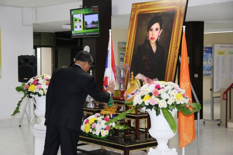 วันที่ 12 มกราคม 2561 คณะเกษตร กำแพงแสน จัดพิธีรับถ้วยพระราชทานและกล่าวคำสำนึกในพระมหากรุณาธิคุณสมเด็จพระเจ้าลูกเธอ เจ้าฟ้าจุฬาภรณวลัยลักษณ์ อัครราชกุมารี ที่ทรงพระราชทานถ้วยรางวัลสำหรับมหาวิทยาลัยเกษตรศาสตร์ ที่ทำคะแนนรวมสูงสุดจากการแข่งขันกีฬาทักษะทางการเกษตร ในงานประเพณี 4 จอบแห่งชาติ ครั้งที่ 35 ซึ่งจัดขึ้นโดย มหาวิทยาลัยทักษิณ วิทยาเขตพัทลุง ระหว่างวันที่ 5-10 มกราคม 2561 ที่ผ่านมา โดย รศ.ดร. สมิต ยิ้มมงคล รองคณบดีฝ่ายกิจกรรมนิสิตและศิลปวัฒนธรรม กล่าวรายงานผลการเข้าร่วมแข่งขัน ซึ่งตัวแทนนิสิตจากมหาวิทยาลัยเกษตรศาสตร์ สามารถคว้ารางวัลชนะเลิศและได้รับคะแนนรวมสูงสุด ได้รับสิทธิในการถือครองถ้วยพระราชทานจากสมเด็จพระเจ้าลูกเธอ เจ้าฟ้าจุฬาภรณวลัยลักษณ์ อัครราชกุมารี เป็นเวลา 1 ปี รศ.ดร. ปภพ สินชยกุล คณบดีคณะเกษตร กำแพงแสน เปิดกรวยกระทงดอกไม้ถวายสักการะเบื้องหน้าพระฉายาลักษณ์สมเด็จพระเจ้าลูกเธอ เจ้าฟ้าจุฬาภรณวลัยลักษณ์ อัครราชกุมารี และกล่าวคำสำนึกในพระมหากรุณาธิคุณฯ หลังจากนั้นเป็นการให้โอวาทและชมเชยตัวแทนนักกีฬาและนิสิตที่เข้าร่วม ตลอดจนถ่ายภาพร่วมกันเพื่อเป็นที่ระลึก ณ ห้องโถง คณะเกษตร กำแพงแสน