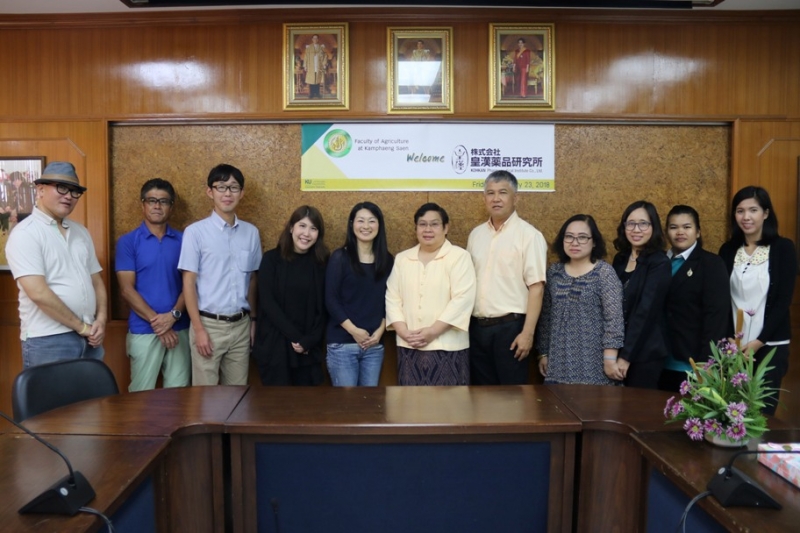 วันที่ 23 กุมภาพันธ์ 2561 ภาควิชาสัตวบาล คณะเกษตร กำแพงแสน ให้การต้อนรับ เจ้าหน้าที่ จาก บริษัท โคคัน ฟาร์มาซูติคอล อินสติติวท์ จำกัด ซึ่งนำลูกค้าจากประเทศญี่ปุ่นเข้าปรึกษาหารือเรื่องมาตรฐานการส่งออกกวาวเครือขาว SARDI 190 ร่วมกับ ผศ.ดร. สิรินทร์พร สินธุวณิชย์ หัวหน้าภาคสัตวบาล คณาจารย์ และเจ้าหน้าที่ ชมแปลงปลูก และเรือนเพาะชำกวาวเครือขาว ของสถานที่ผลิตยาสมุนไพร ณ คณะเกษตร กำแพงแสน
