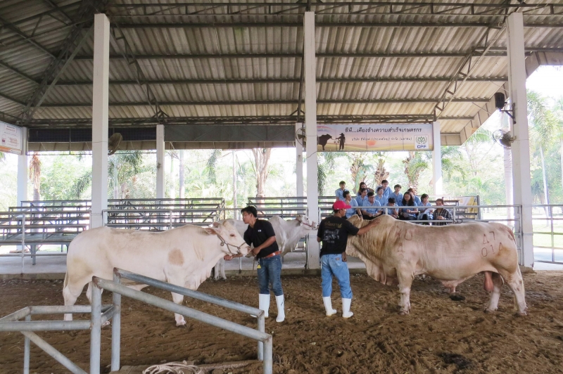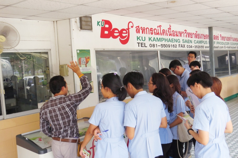 นิสิตจากภาควิชาเวชศาสตร์และทรัพยากรการผลิตสัตว์ คณะสัตวแพทย์ศาสตร์ กำแพงแสน ดูงานโคเนื้อ