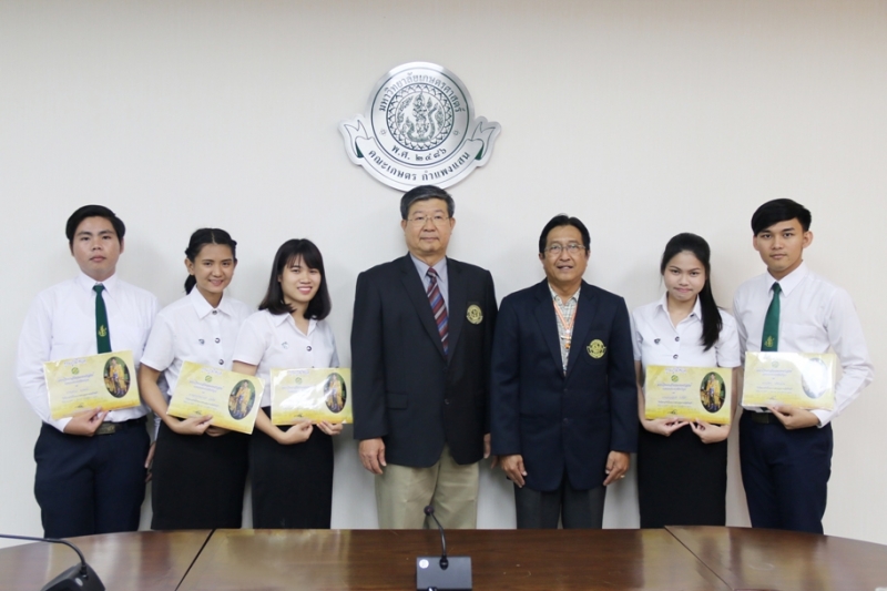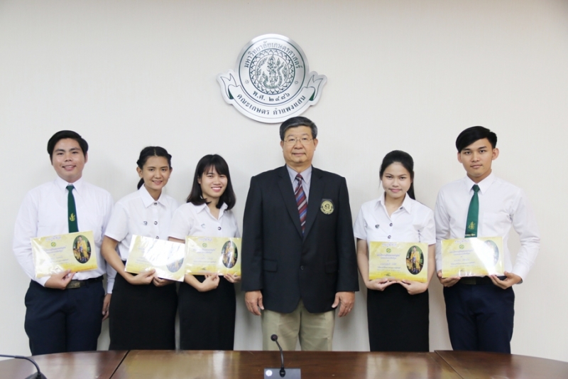 วันที่ 16 มีนาคม 2561 รศ.ดร. สมิต ยิ้มมงคล รองคณบดีฝ่ายกิจกรรมนิสิตและศิลปวัฒนธรรม นำนิสิตคณะเกษตร กำแพงแสน ที่ได้รับทุนพระราชทานรางวัลเรียนดี "ทุนภูมิพลประจำปีการศึกษา 2560 จำนวน 5 คน เข้าพบ รศ.ดร. ปภพ สินชยกุล คณบดีคณะเกษตร กำแพงแสน เพื่อรายงานตัวหลังจากเข้ารับมอบทุน ทั้งนี้ ท่านคณบดีได้กล่าวชื่นชมและให้โอวาทแก่นิสิต ณ ห้องประชุม คณะเกษตร กำแพงแสน