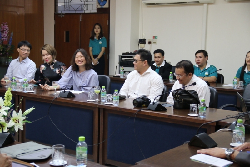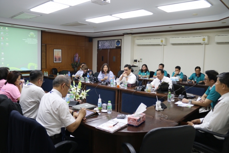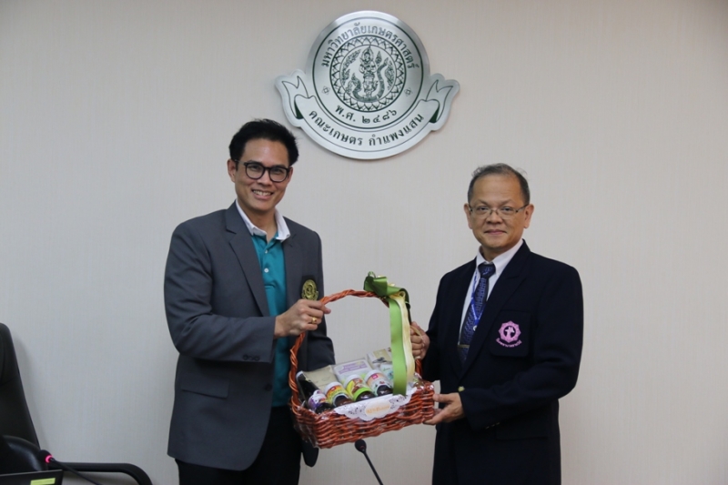วันที่ 2 เมษายน 2561 ผู้บริหาร คณาจารย์ และเจ้าหน้าที่ คณะเกษตร กำแพงแสน ให้การต้อนรับคณาจารยจากคณะอุตสาหกรรมเกษตร คณะมนุษศาสตร์ มหาวิทยาลัยเกษตรศาสตร์ และคณะผูบริหารโรงพยาบาลราชวิถี จำนวน 11 ท่าน ในการเขาหารือแนวทางการออกแบบและดำเนินโครงการภายใต้ "สถาบันพัฒนาความร่วมมือด้านสาธารณสุขและคุณภาพชีวิตเชิงยุทธศาสตร์" ด้านวัตถุดิบอาหารปลอดภัยสู่โรงพยาบาลสังกัดกระทรวงสารธารณสุข ดานวัตถุดิบอาหารปลอดภัยสูโรงพยาบาล กับมหาวิทยาลัยเกษตรศาสตร์ วิทยาเขตกำแพงแสน ซึ่งคณะเกษตร กำแพงแสน ได้นำเสนอผลิตผลอันได้แก่ เนื้อไก่ตะเภาทองเกษตรศาสตร์ เนื้อโคพันธุ์กำแพงแสน ผลิตภัณฑ์จากนมแพะ และ พืชผักปลอดภัย ณ คณะเกษตร กำแพงแสน