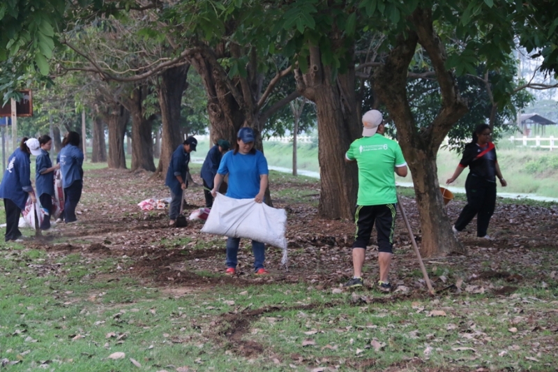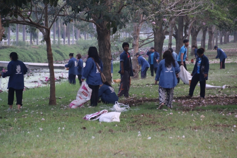 นิสิตคณะเกษตร กำแพงแสนช่วยกันใส่ปุ๋ยบำรุงต้นชมพูพันธุ์ทิพย์