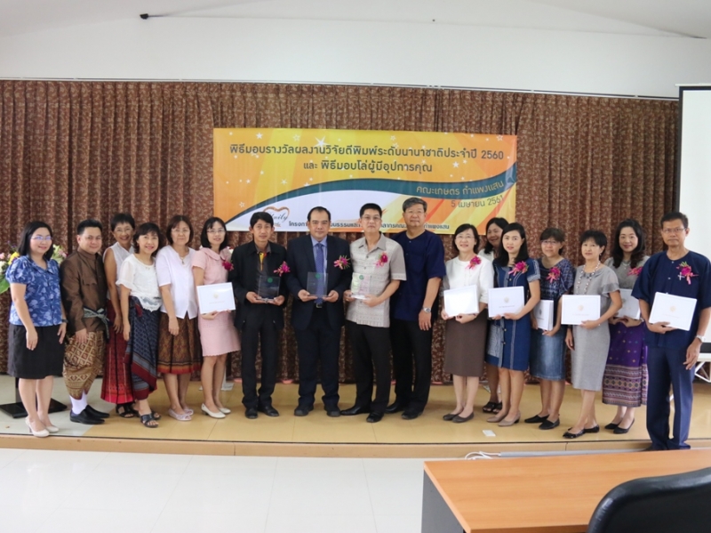 วันที่ 5 เมษายน 2561 คณะเกษตร กำแพงแสน จัดโครงการสร้างวัฒนธรรมและค่านิยมของบุคลากรคณะเกษตร กำแพงแสน และโครงการวันคล้ายวันสถาปนาคณะเกษตร กำแพงแสน เริ่มด้วยการทำบุญตักบาตรพระสงฆ์ 9 รูป เพื่อความเป็นสิริมงคล พิธีมอบรางวัลผลงานวิจัยตีพิมพ์ระดับนานาชาติ ประจำปี 2560 พิธีมอบโล่ผู้อุปการะคุณ พิธีรดน้ำขอพรคณาจารย์อาวุโส ในโอกาสนี้มีคณะผู้บริหารและบุคลากรจากหน่วยงานต่างๆ ภายในวิทยาเขตกำแพงแสน มาร่วมแสดงความยินดีอีกด้วย และรับประทานอาหารร่วมกัน ณ คณะเกษตร กำแพงแสน