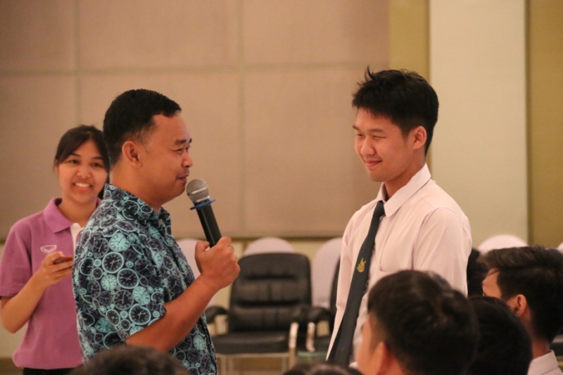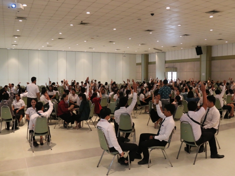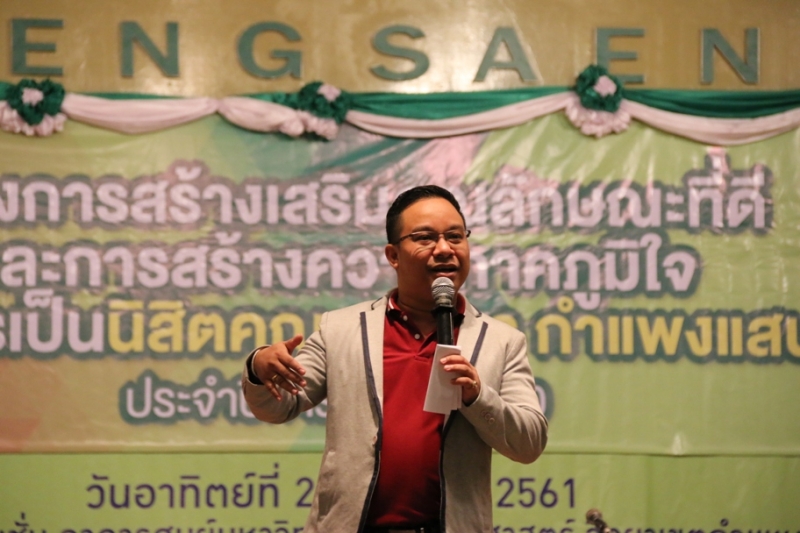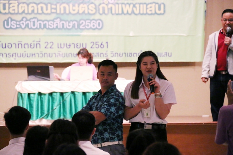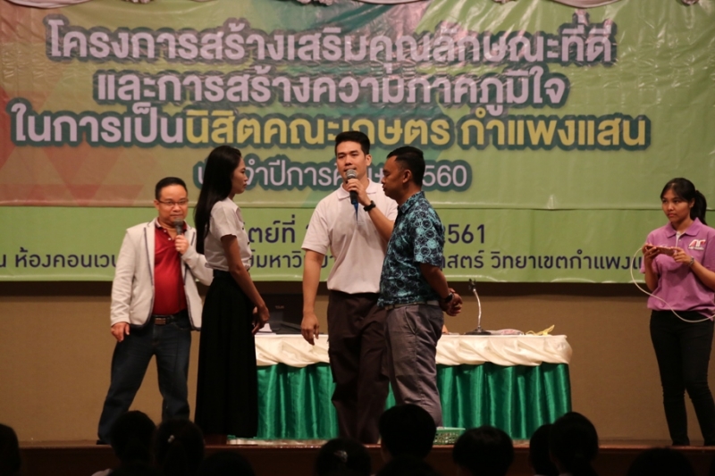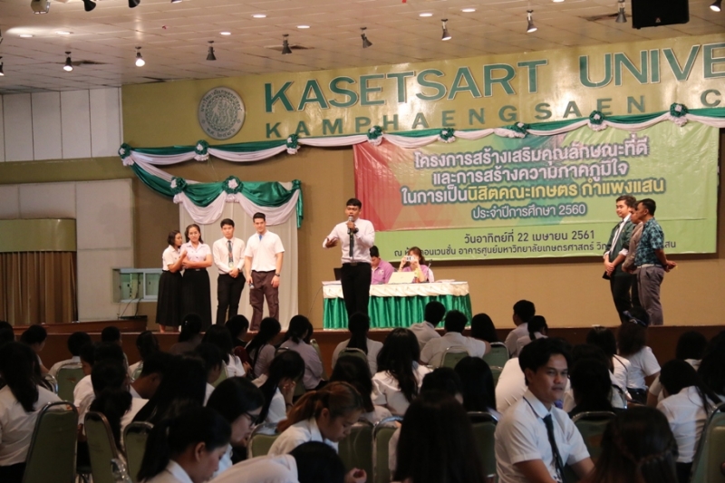 วันที่ 22 เมษายน 2561 หน่วยกิจการนิสิต คณะเกษตร กำแพงแสน จัดโครงการ สร้างเสริมคุณลักษณะที่ดี และการสร้างความภาคภูมิใจในการเป็นนิสิตคณะเกษตรกำแพงแสน (อบรมบุคลิกภาพ) สำหรับนิสิตชั้นปีที่ 4 เพื่อพัฒนาบุคลิกภาพของนิสิตที่ดีตามคุณลักษณะที่พึงประสงค์ เกิดความภาคภูมิใจในการเป็นนิสิตมหาวิทยาลัยเกษตรศาสตร์ ฝึกการทำงานเป็นหมู่คณะและทำตนเองให้เป็นประโยชน์ต่อสังคม สามารถนำความรู้ไปประยุกต์ใช้ในการปฏิบัติงาน และเป็นแนวทางให้นิสิตเสริมสร้างมิตรภาพดำรงชีวิตอยู่และปฏิบัติภารกิจที่จะต้องกระทำต่อไป โดยคุณภาสกร กังวานชาญสิริ และทีมงาน บรรยายในหัวข้อ การเตรียมความพร้อมสู่การทำงาน ณ ห้องคอนเวนชั่น อาคารศูนย์มหาวิทยาลัยเกษตรศาสตร์ วิทยาเขตกำแพงแสน