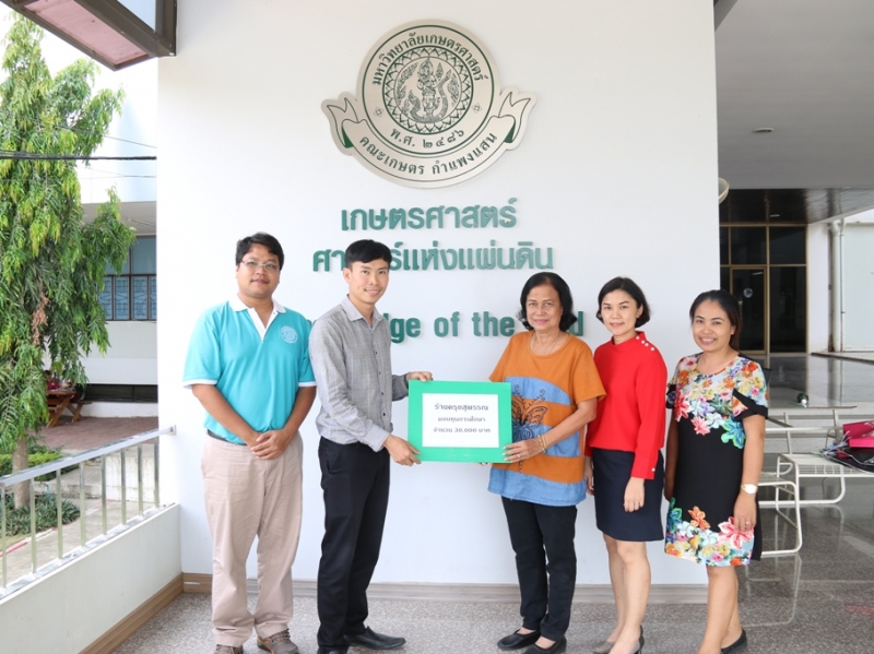 วันที่ 1 พฤษภาคม 2561 อาจารย์ ดร. ธวัชชัย อินทร์บุญช่วย ผู้ช่วยคณบดีฝ่ายกิจกรรมนิสิตและศิลปวัฒนธรรม พร้อมด้วยอาจารย์ และเจ้าหน้าที่ รับมอบทุนการศึกษาจาก ร้านครุยสุพรรณ โดย คุณเจริญศรี กิจจารุวงษ์ เพื่อสนับสนุนการศึกษาให้แก่นิสิตคณะเกษตร กำแพงแสน ณ คณะเกษตร กำแพงแสน