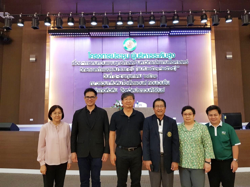 รศ.ดร. ปภพ สินชยกุล คณบดีคณะเกษตร กำแพงแสน พร้อมด้วยคณะผู้บริหาร เข้าร่วมโครงการประชุมผู้บริหารระดับสูง เรื่อง "การทบทวนแผนยุทธศาสตร์ มหาวิทยาลัยเกษตรศาสตร์ วิทยาเขตกำแพงแสน ระยะ 5 ปี (พ.ศ.2561-2565) เมื่อวันที่ 4-5 พฤษภาคม 2561 ณ วรวนา หัวหินโฮเตลแอนด์ คอนเวนชั่น อำเภอหัวหิน จังหวัดประจวบคีรีขันธ์