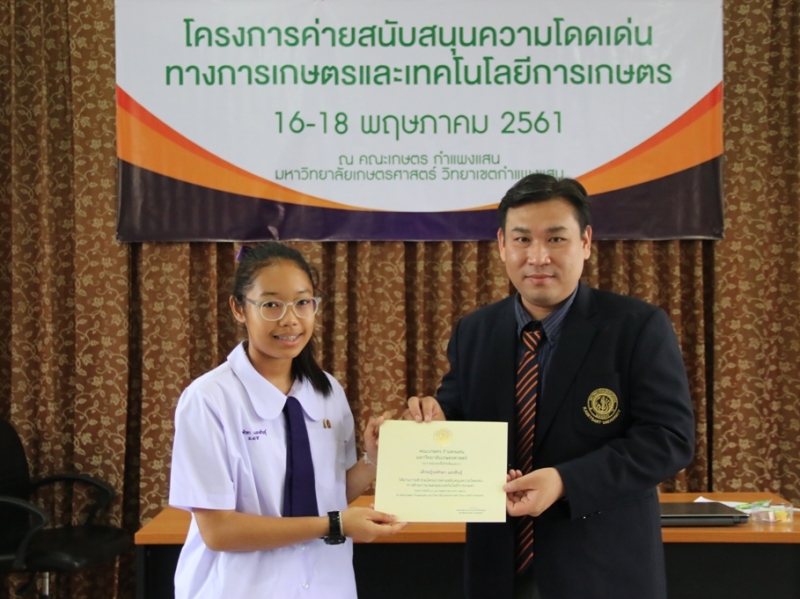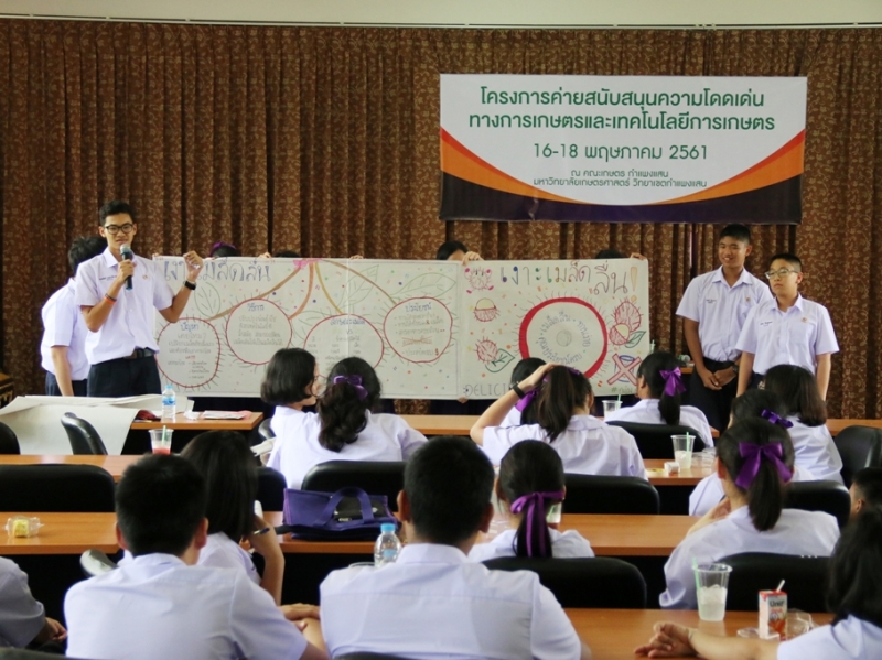 วันที่ 16 พฤษภาคม พ.ศ. 2561 รศ.ดร. ปภพ สินชยกุล คณบดีคณะเกษตร กำแพงแสน กล่าวต้อนรับและเปิดค่ายสนับสนุนความโดดเด่นทางการเกษตรและเทคโนโลยีทางการเกษตร สำหรับนักเรียนชั้น ม.4 โครงการสนับสนุนการจัดตั้งห้องเรียนวิทยาศาสตร์ในโรงเรียนโดยการกำกับดูแลของมหาวิทยาลัย (วมว.) โรงเรียนสาธิตแห่งมหาวิทยาลัยเกษตรศาสตร์ วิทยาเขตกำแพงแสน ศูนย์วิจัยและพัฒนาการศึกษา จำนวน 60 คน ซึ่งค่าย วมว. นี้จัดขึ้นระหว่างวันที่ 16-18 พฤษภาคม พ.ศ. 2561 โดยมีกิจกรรมที่ก่อให้เกิดแนวคิดและฝึกปฏิบัติเกี่ยวกับทางด้านการเกษตร สามารถนำองค์ความรู้ที่ได้ไปต่อยอด และใช้เป็นแนวทางในการจัดทำโครงงานวิทยาศาสตร์ที่เกี่ยวข้องกับการพัฒนาการเกษตร ณ คณะเกษตร กำแพงแสน
