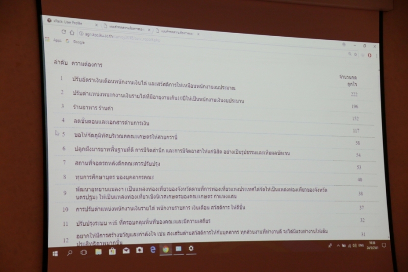 วันที่ 24 พฤษภาคม 2561 คณะเกษตร กำแพงแสน จัดกิจกรรม รายงานผลการบริหารงานไตรมาสที่ 2 ประจำปีงบประมาณ พ.ศ. 2561 ภายใต้โครงการผู้บริหารพบบุคลากรคณะเกษตร กำแพงแสน โดย รศ.ดร. ปภพ สินชยกุล คณบดีคณะเกษตร กำแพงแสน ผู้บริหาร และหัวหน้างาน รายงานให้ผู้เข้าร่วมกิจกรรมจำนวนกว่า 200 คน ทราบผลการบริหารงานของคณะ ร่วมกันเสนอความต้องการที่มีต่อคณะ และสรุปผลการสำรวจ เพื่อเป็นข้อมูลในการดำเนินการเพื่อพัฒนาคณะต่อไป ณ ห้องเธียเตอร์ อาคารศูนย์มหาวิทยาลัยเกษตรศาสตร์ วิทยาเขตกำแพงแสน