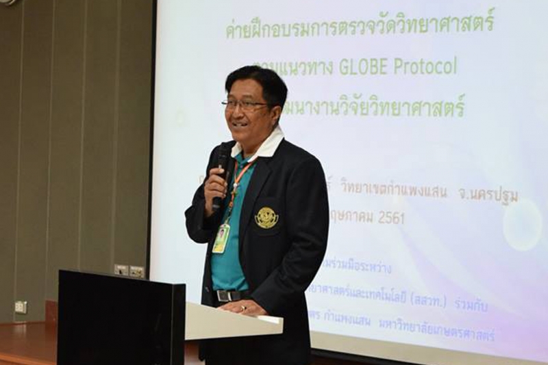 ภาควิชาปฐพีวิทยา คณะเกษตร กำแพงแสน ร่วมกับสถาบันส่งเสริมการสอนวิทยาศาสตร์และเทคโนโลยี ได้ดำเนินการจัด ค่ายฝึกอบรมการตรวจวัดวิทยาศาสตร์ตามแนวทาง GLOBE Protocol เพื่อพัฒนางานวิจัยวิทยาศาสตร์ ให้กับนักเรียนและครูของโรงเรียนเครือข่าย ในระหว่างวันที่ 24-25 พฤษภาคม 2561 ณ ห้องบรรยาย 211 อาคารเรียนรวม 3 และห้องบรรยาย ภาควิชาปฐพีวิทยา โดยได้รับเกียรติจาก รศ.ดร.สมิต ยิ้มมงคล รองคณบดีฝ่ายกิจกรรมนิสิตและศิลปวัฒนธรรม เป็นประธานเปิดค่ายฝึกอบรม และ ผศ.ดร. ชัยสิทธิ์ ทองจู หัวหน้าภาควิชาปฐพีวิทยา เป็นประธานปิดค่ายฝึกอบรม มอบหนังสือที่ระลึก และมอบประกาศนียบัตร แก่ครู และนักเรียนที่เข้าร่วมโครงการ มีครูและนักเรียนจาก 17 โรงเรียน ในจังหวัดชัยนาท อ่างทอง สุพรรณบุรี นครปฐม กาญจนบุรี และราชบุรี เข้าร่วมโครงการ จำนวน 79 คน คณะอาจารย์และบุคลกากรภาควิชาปฐพีวิทยา ที่เกี่ยวข้องจำนวน 16 คน