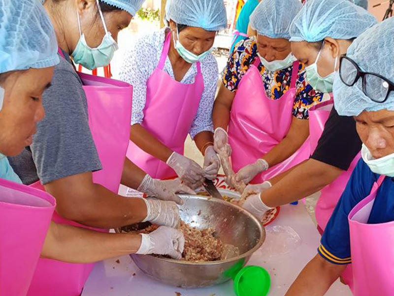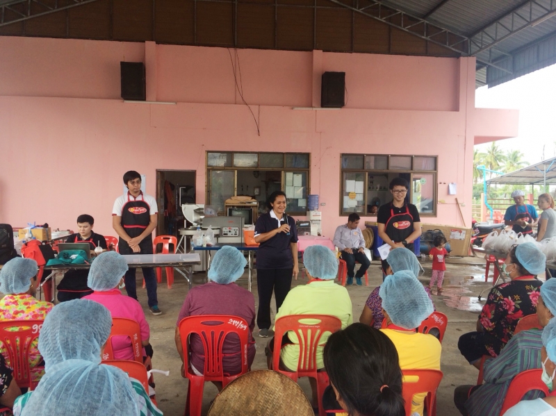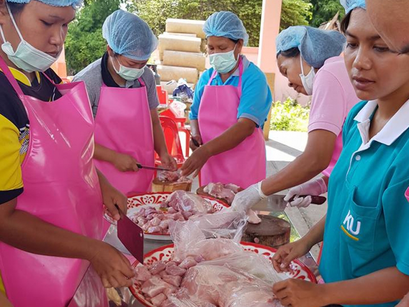 วันที่ 6-7 มิถุนายน 2561 คณะเกษตร กำแพงแสน โดย ผศ.ดร.ศศิธร นาคทอง รองคณบดีฝ่ายวิจัยและบริการวิชาการ ให้ความร่วมมือกับ โครงการ 3 ประสาน; CSR ร่วมกัน ระหว่าง คณะเกษตร กำแพงแสน, บริษัท CPF ประเทศไทย จำกัด มหาชน และ กลุ่มแม่บ้านตำบลทรายมูล จังหวัดยโสธร จัดโครงการแปรรูป แคปหมู ไส้กรอกเปรี้ยว ไส้กรอกเวียนนา และ ลูกชิ้น เพื่อเป็นการเพิ่มพูนความรู้เเละเพิ่มมูลค่าเนื้อสุกร ให้เป็นเเนวทางในการประกอบอาชีพ