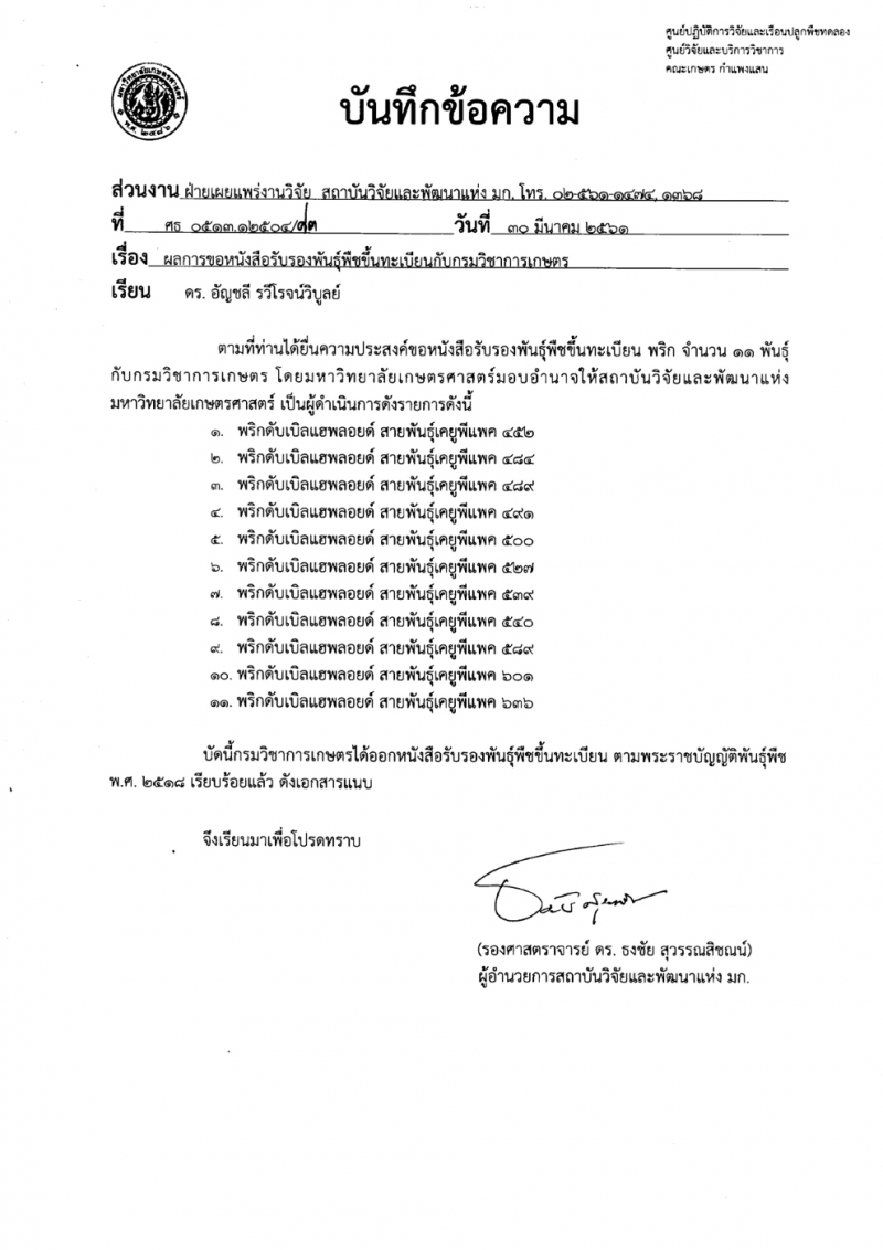สังกัด ศูนย์ปฏิบัติการวิจัยและเรือนปลูกพืชทดลอง ศูนย์วิจัยและบริการวิชาการ คณะเกษตร กำแพงแสน