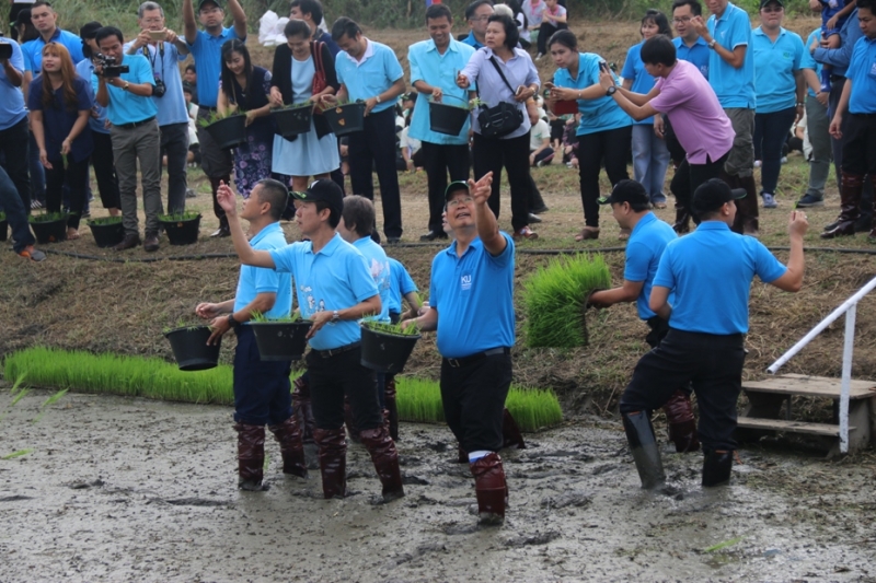 วันที่ 10 สิงหาคม 2561 เวลา 07.19-10.00 น. รศ.ดร. ปภพ สินชยกุล คณบดีคณะเกษตร กำแพงแสน พร้อมด้วยคณะผู้บริหาร บุคลากร และนิสิต ร่วมโครงการปลูกข้าววันแม่ ประจำปี พ.ศ. 2561 โดยคณะผู้บริหารวิทยาเขตกำแพงแสนร่วมสักการะพระพิรุณ และ รศ.ดร. สมิต ยิ้มมงคล รองคณบดีฝ่ายกิจกรรมนิสิตและศิลปวัฒนธรรม นำนิสิตคณะเกษตร กำแพงแสน ปั่นจักรยานจากคณะสู่ปะรำพิธี ร่วมกันถวายราชสดุดีและถวายพระพรชัยมงคลแด่สมเด็จพระนางเจ้าสิริกิติ์พระบรมราชินีนาถ ในรัชกาลที่ 9 เนื่องในโอกาสมหามงคลเฉลิมพระชนมพรรษา 86 พรรษา 12 สิงหาคม 2561 และร่วมกันดำนาปลูกข้าว ณ ทุ่งนาไพร มหาวิทยาลัยเกษตรศาสตร์ วิทยาเขตกำแพงแสน