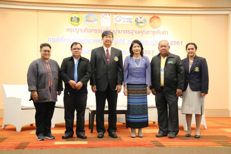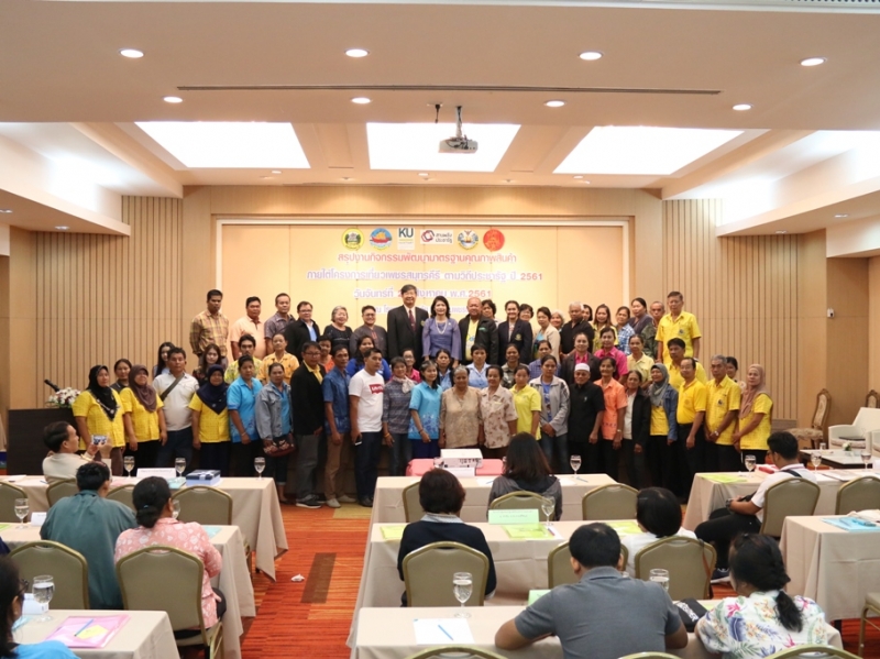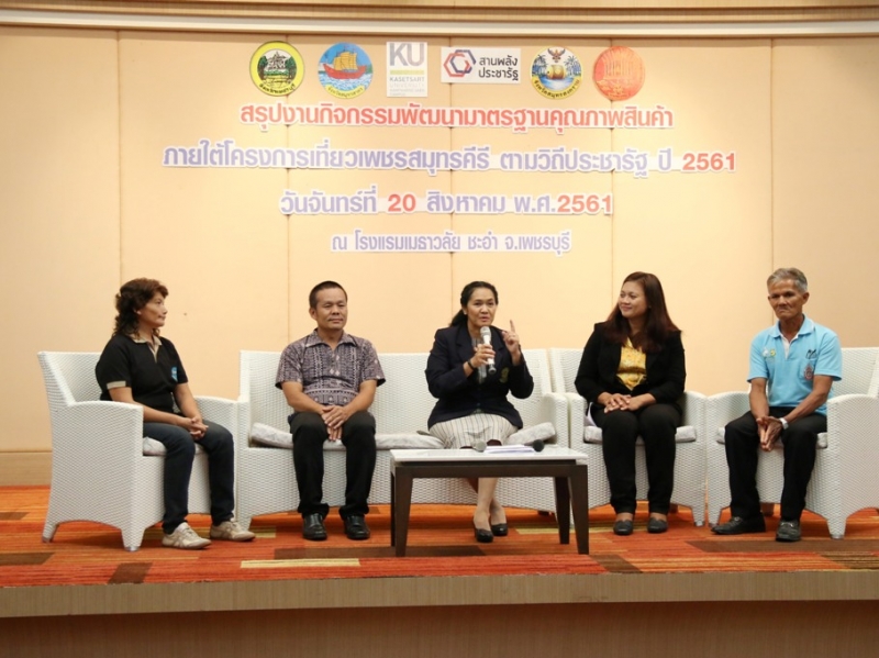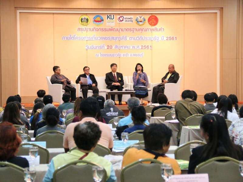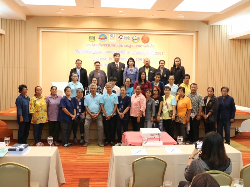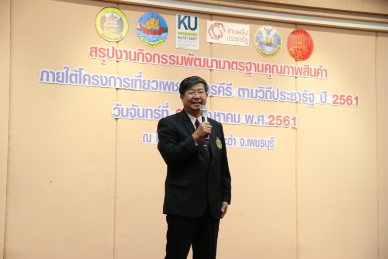 วันที่ 20 สิงหาคม 2561 คณะเกษตร กำแพงแสน สรุปงานกิจกรรมพัฒนามาตรฐานคุณภาพสินค้า ภายใต้โครงการเที่ยวเพชรสมุทรคีรี ตามวิถีประชารัฐ ปี พ.ศ. 2561 โดย ผศ.ดร. ศศิธร นาคทอง หัวหน้าโครงการพัฒนาวิชาการของคณะ กล่าวรายงาน และได้รับเกียรติจาก รศ.ดร. ปภพ สินชยกุล คณบดีคณะเกษตร กำแพงแสน กล่าวต้อนรับและเปิดโครงการ ในช่วงเช้ามีการเสวนาวิชาการ เรื่อง กิจกรรมพัฒนามาตรฐานคุณภาพสินค้าภายใต้โครงการเที่ยวเพชรสมุทรคีรีตามวีประชารัฐ โดยคณะเกษตร กำแพงแสน สำนักงานพัฒนาชุมชนจังหวัด และบริษัท ประชารัฐรักสามัคคี (วิสาหกิจเพื่อสังคม) จำกัด และในช่วงบ่าย เป็นการนำเสนอผลงานกลุ่มวิสาหกิจชุมชนโครงการฯ และสรุปปิดโครงการโดย ผศ.ดร. ศศิธร นาคทอง หัวหน้าโครงการฯ และมอบของที่รึกและกล่าวปิดโครงการ โดย รศ.ดร. ปภพ สินชยกุล คณบดีคณะเกษตร กำแพงแสน มีวิสาหกิจชุมชนจำนวน 24 กลุ่ม ณ โรงแรมเมธาวลัย ชะอำ จ.เพชรบุรี