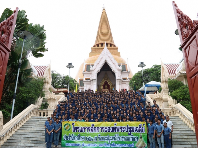 วันเสาร์ที่ 25 สิงหาคม 2561 สโมสรนิสิตคณะเกษตร กำแพงแสน มหาวิทยาลัยเกษตรศาสตร์ วิทยาเขตกำแพงแสน จัดโครงการ "สักการะองค์พระปฐมเจดีย์ ประจำปีการศึกษา 2561" เพื่อเป็นการแสดงความเคารพต่อสิ่งศักดิ์สิทธิ์ประจำจังหวัดนครปฐม เป็นการสร้างขวัญและกำลังใจให้กับนิสิตชั้นปีที่ 1 และเป็นการสร้างภาพลักษณ์ที่ดีแก่นิสิตคณะเกษตร กำแพงแสน ก่อนออกเดินทาง นายทศพร ดำผอม ประธานโครงการกล่าวรายงาน และได้รับเกียรติจากรศ.ดร. สมิต ยิ้มมงคล รองคณบดีฝ่ายกิจกรรมนิสิตและศิลปวัฒนธรรม กล่าวเปิดโครงการ บริเวณหน้าคณะเกษตร กำแพงแสน จากนั้นได้เดินทางไปสักการะองค์พระปฐมเจดีย์ ยังวัดพระปฐมเจดีย์ มีกิจกรรมการบรรยายประวัติความเป็นมาขององค์พระปฐมเจดีย์ โดยพนักงานสันทนาการ ฝ่ายประชาสัมพันธ์ ประจำวัดพระปฐมเจดีย์ การบำเพ็ญประโยชน์ของนิสิตโดยช่วยกันเก็บกวาดทำความสะอาดบริเวณวัด ทั้งยังได้เดินทางไปทัศนศึกษา ณ พระราชวังสนามจันทร์ เพื่อให้นิสิตได้ศึกษาประวัติความเป็นมาและสถานที่สำคัญประจำจังหวัดนครปฐม