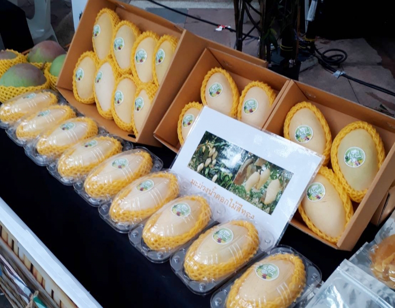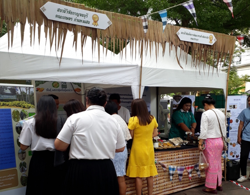 สถานีวิจัยกาญจนบุรี ศูนย์วิจัยและบริการวิชาการ คณะเกษตร กำแพงแสน ร่วมกับกลุ่มวิสาหกิจชุมชนผู้ผลิตมะม่วงส่งออกอำเภอบางแพ ร่วมจัดแสดงผลิตภัณฑ์และนำเสนอเทคโนโลยีที่ถ่ายทอดสู่กลุ่มเป้าหมาย กิจกรรม งานวิถีไทย วิถีเกษตร : ชิม ชอป แชร์ แลคณะเกษตร เมื่อวันที่ 31 สิงหาคม พ.ศ. 2561 ณ บริเวณลานหน้าอาคารวชิรานุสรณ์ คณะเกษตรมหาวิทยาลัยเกษตรศาสตร์ เพื่อเป็นแรงขับเคลื่อนให้กับกลุ่มผู้ผลิตมะม่วง ได้มีการสื่อสารและแลกเปลี่ยนความรู้ทางด้านการการผลิตและปรับปรุงคุณภาพของมะม่วง ทำให้ได้ผลผลิตที่ดีเป็นที่ต้องการของตลาด และยังได้รับการรับรองมาตรฐาน Good Manufacturing Practice (GMP) สามารถส่งออกผลิตภัณฑ์ขายได้ทั้งในประเทศและต่างประเทศ