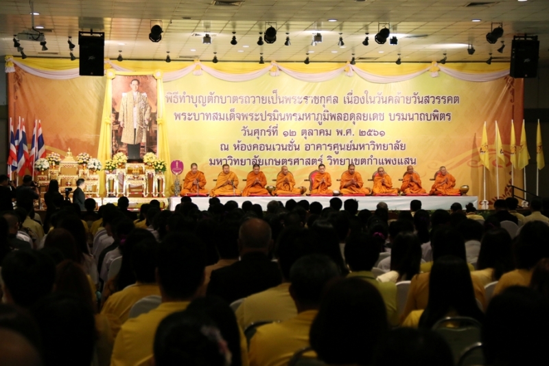 วันที่ 12 ตุลาคม 2561 รศ.ดร. ปภพ สินชยกุล คณบดีคณะเกษตร กำแพงแสน พร้อมด้วย ผู้บริหารและบุคลากร ร่วมพิธีบำเพ็ญพระราชกุศล เพื่ออุทิศถวายพระบาทสมเด็จพระปรมินทรมหาภูมิพลอดุลยเดช บรมนาถบพิตร เนื่องในวันคล้ายวันสวรรคต 13 ตุลาคม 2561 ณ ห้องคอนเวนชั่น อาคารศูนย์มหาวิทยาลัยเกษตรศาสตร์ วิทยาเขตกำแพงแสน