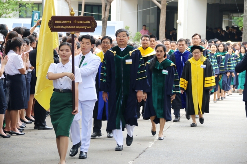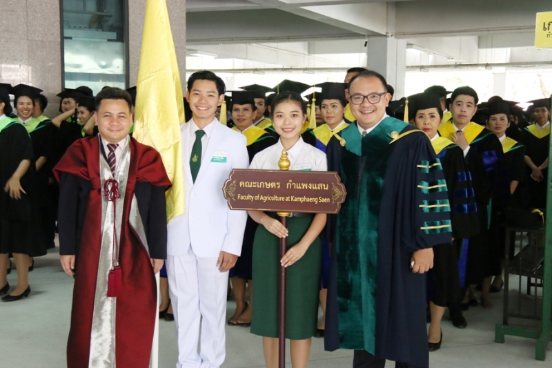 วันที่ 23 ตุลาคม 2561 รศ.ดร. ปภพ สินชยกุล คณบดีคณะเกษตร กำแพงแสน พร้อมด้วยผู้บริหาร และคณาจารย์ คณะเกษตร กำแพงแสน นำ ดุษฎีบัณฑิต มหาบัณฑิต และบัณฑิต รวมจำนวน 404 คน ที่สำเร็จการศึกษาในปีการศึกษา 2560 เข้ารับพระราชทานปริญญาบัตร จาก สมเด็จพระเจ้าลูกเธอ เจ้าฟ้าจุฬาภรณวลัยลักษณ์ อัครราชกุมารี เสด็จแทนพระองค์ ในพิธีพระราชทานปริญญาบัตร มหาวิทยาลัยเกษตรศาสตร์ ประจำปีพุทธศักราช 2561 ในปีนี้ มีบัณฑิตที่ได้รับเกียรตินิยมอันดับ 1 จำนวน 14 คน และ เกียรตินิยมอันดับ 2 จำนวน 17 คน ณ อาคารจักรพันธ์เพ็ญศิริ มหาวิทยาลัยเกษตรศาสตร์ บางเขน ขอแสดงความยินดีกับผู้สำเร็จการศึกษาทุกท่าน