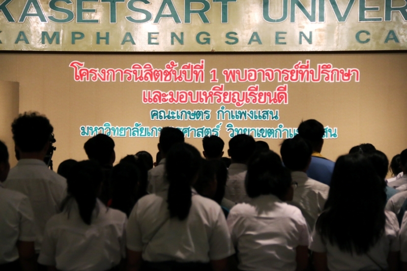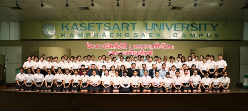 วันที่ 30 ตุลาคม 2561 งานบริการการศึกษา สำนักงานเลขานุการ คณะเกษตร กำแพงแสน จัดโครงการ นิสิตชั้นปีที่ 1 พบอาจารย์ที่ปรึกษา และมอบเหรียญเรียนดี เริ่มต้นด้วยการแนะนำระบบประกันคุณภาพการศึกษาและแนวแนวการศึกษา โดย รศ.ดร. ชลิดา เล็กสมบูรณ์ รองคณบดีฝ่ายการศึกษาและประกันคุณภาพ ได้รับเกียรติจาก รศ.ดร. ปภพ สินชยกุล คณบดีคณะเกษตร กำแพงแสน กล่าวเปิดโครงการและมอบเหรียญเรียนดี ให้แก่นิสิตที่มีผลการเรียนดี ประจำปีการศึกษา 2561 จำนวน 91 คน มีการแนะนำอาจารย์ที่ปรึกษา และกิจกรรมพบอาจารย์ที่ปรึกษาพร้อมรับประทานอาหาร ณ ห้องคอนเวนชั่น อาคารศูนย์มหาวิทยาลัยเกษตรศาสตร์ วิทยาเขตกำแพงแสน