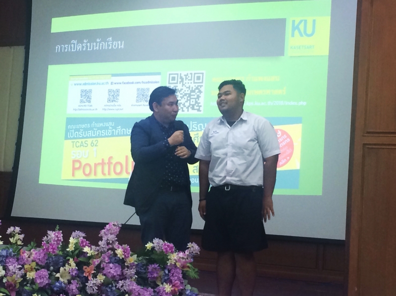 วันที่ 20 พฤศจิกายน 2561 ผศ.ดร. เชิดพงษ์ ขีระจิตต์ ผู้ช่วยคณบดีฝ่ายการศึกษาและประกันคุณภาพ คณะเกษตร กำแพงแสน พร้อมด้วยเจ้าหน้าที่ ร่วมเดินทางกับวิทยาเขตกำแพงแสน ในโครงการแนะแนวสัญจร เพื่อแนะแนวหลักสูตรการเรียนการสอนให้แก่นักเรียน โรงเรียนราชสีมาวิทยาลัย จังหวัดนครราชสีมา สำนักงานเขตพื้นที่การศึกษามัธยมศึกษา เขต 31 (สพม.31)