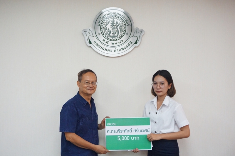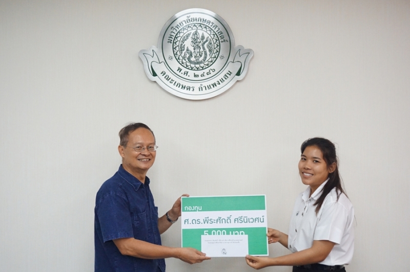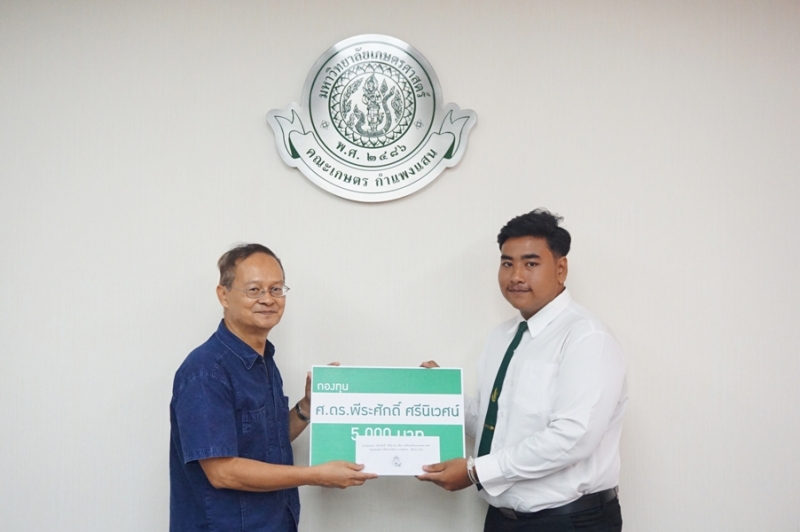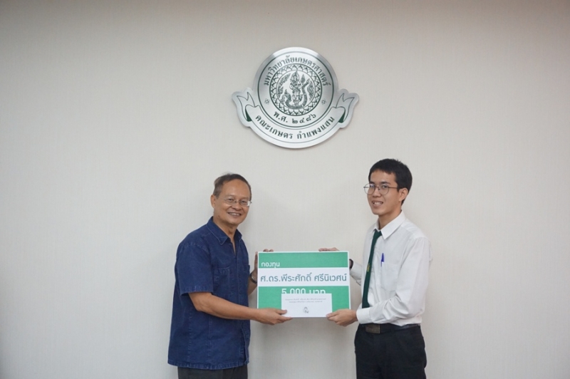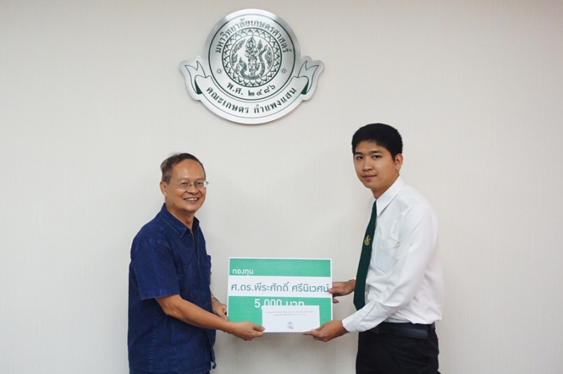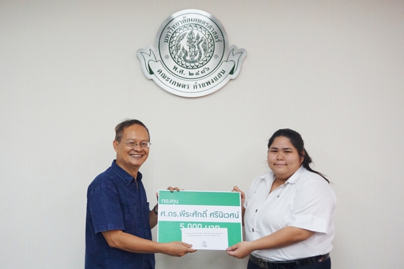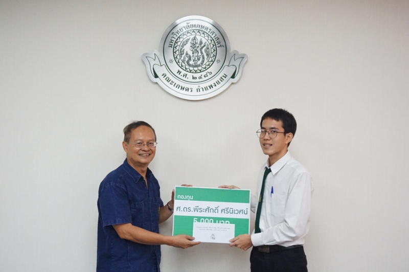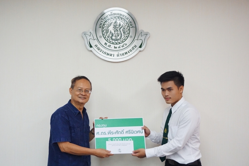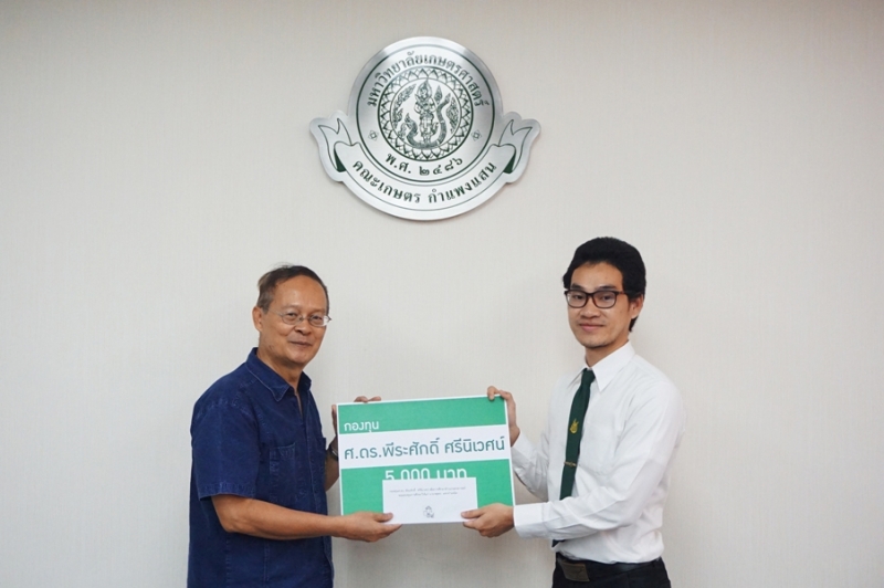 วันที่ 23 พฤศจิกายน 2561 รศ.ดร. ปภพ สินชยกุล คณบดีคณะเกษตร กำแพงแสน พร้อมด้วยผู้บริหาร และคณาจารย์ร่วมใน พิธีมอบทุนการศึกษา กองทุน ศ.ดร. พีระศักดิ์ ศรีนิเวศน์ โดย ศ.ดร.พีระศักดิ์ ศรีนิเวศน์ กล่าวให้โอวาท และมอบทุนการศึกษาให้แก่นิสิตผู้ได้รับทุน จำนวน 10 คน จากนั้นถ่ายภาพรวมกัน ณ ห้องประชุมเสรี-สมพร ทรัพยสาร (ห้องประชุม 1)