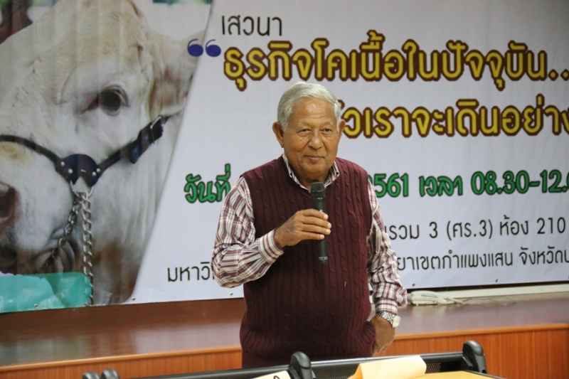 วันที่ 7 ธันวาคม 2561 ภาควิชาสัตวบาล คณะเกษตร กำแพงแสน จัดงานเสวนา เรื่อง ธุรกิจโคเนื้อในปัจจุบัน... แล้วเราจะเดินอย่างไร ได้รับเกียรติจาก ผศ.ดร. สิรินทร์พร สินธุสณิชย์ หัวหน้าภาคสัตวบาล กล่าวเปิดการเสวนา ณ ศร.3 ห้อง 210 มหาวิทยาลัยเกษตรศาสตร์ วิทยาเขตกำแพงแสน มีผู้สนใจเข้าร่วมฟังการสัมมนาจำนวนมาก