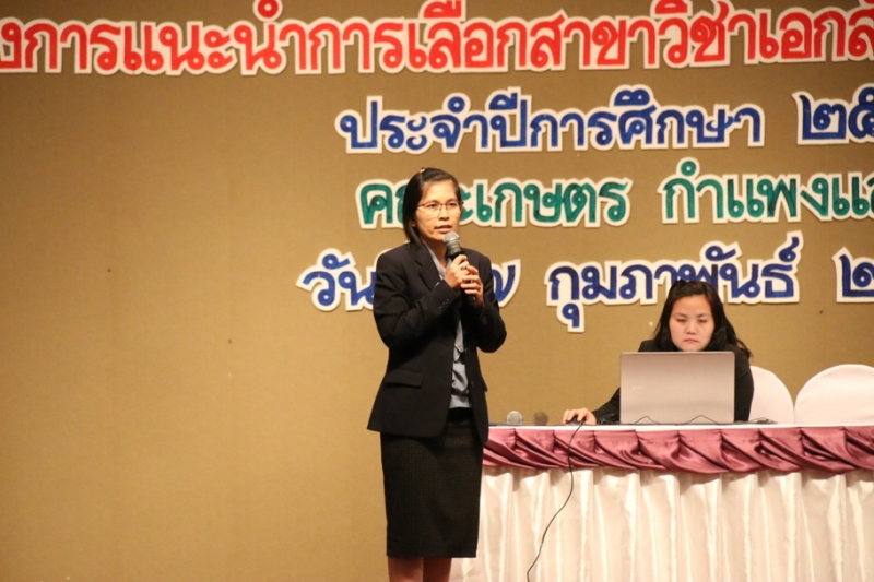 วันที่ 7 กุมภาพันธ์ 2562 งานบริการการศึกษา สำนักงานเลขานุการ คณะเกษตร กำแพงแสน ดำเนินโครงการแนะนำการเลือกสาขาวิชาเอก ประจำปีการศึกษา 2561 คณะเกษตร กำแพงแสน (หลักสูตรเกษตรศาสตร์) ให้แก่นิสิตชั้นปี ที่ 1 เพื่อแนะนำข้อมูลรายละเอียดการเรียนการสอนของภาควิชาต่างๆ พร้อมทั้งกฎเกณฑ์การเลือก/ย้ายสาขาวิชาเอก ในปีการศึกษา 2561 โดย รศ.ดร. ปภพ สินชยกุล คณบดีคณะเกษตร กำแพงแสน กล่าวเปิดโครงการ และมีคณาจารย์ของแต่ละภาควิชาบรรยายให้ข้อมูล ณ ห้องคอนเวนชั่น อาคารศูนย์มหาวิทยาลัยเกษตรศาสตร์ วิทยาเขตกำแพงแสน