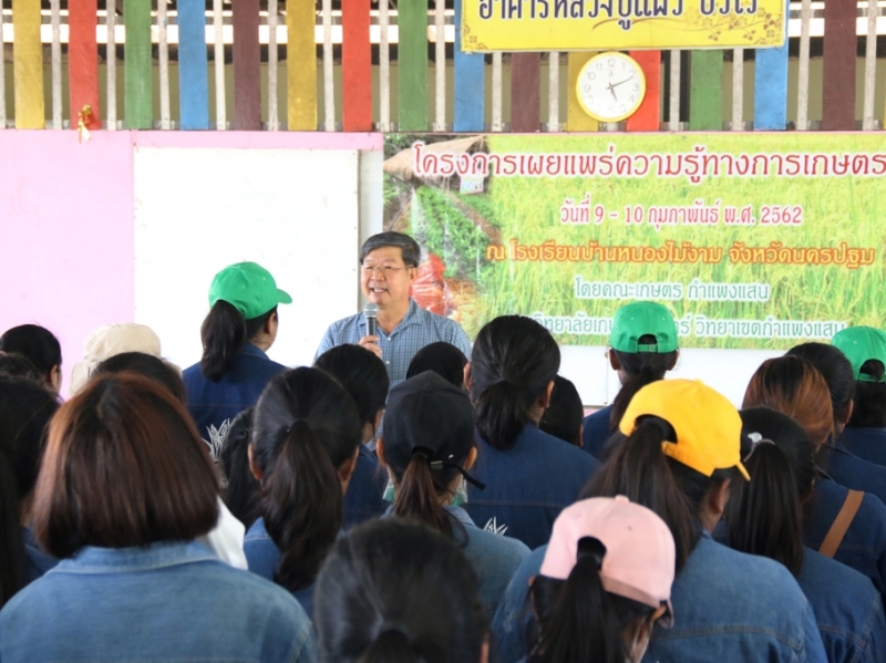 วันที่ 9-10 กุมภาพันธ์ 2562 สโมสรนิสิตคณะเกษตร กำแพงแสน ดำเนิน โครงการเผยแพร่ความรู้ทางการเกษตรสู่ชนบท โดยการเข้าไปพัฒนาด้านการเกษตรให้แก่โรงเรียนบ้านหนองไผ่งาม เพื่อส่งเสริมความเป็นผู้นำ ก่อให้เกิดความสามัคคี ตระหนักถึงความสำคัญของชุมชนและสิ่งแวดล้อม อีกทั้งเป็นการเผยแพร่ชื่อเสียงของนิสิตทางด้านการเกษตรให้เป็นที่เป็นรู้จัก การแลกเปลี่ยนองค์ความรู้ ความคิดเห็น และการเรียนรู้ของนิสิตคณะเกษตร กำแพงแสน รวมไปถึงเป็นการให้นิสิตคณะเกษตร กำแพงแสน เรียนรู้การอยู่ร่วมกันกับผู้อื่นและมีส่วนร่วมในการรับผิดชอบกิจกรรมเพื่อตนเองและสังคม มีพิธีเปิดโครงการเมื่อวันที่ 9 กุมภาพันธ์ 2562 โดยนางสาวลูกศร ปั้นบุญมี ประธานโครงการ กล่าวรายงาน และได้รับเกียรติจาก รศ.ดร. ปภพ สินชยกุล คณบดีคณะเกษตร กำแพงแสน เป็นประธานกล่าวเปิดโครงการ ณ โรงเรียนบ้านหนองไผ่งาม ต.กำแพงแสน อ.กำแพงแสน จ.นครปฐม