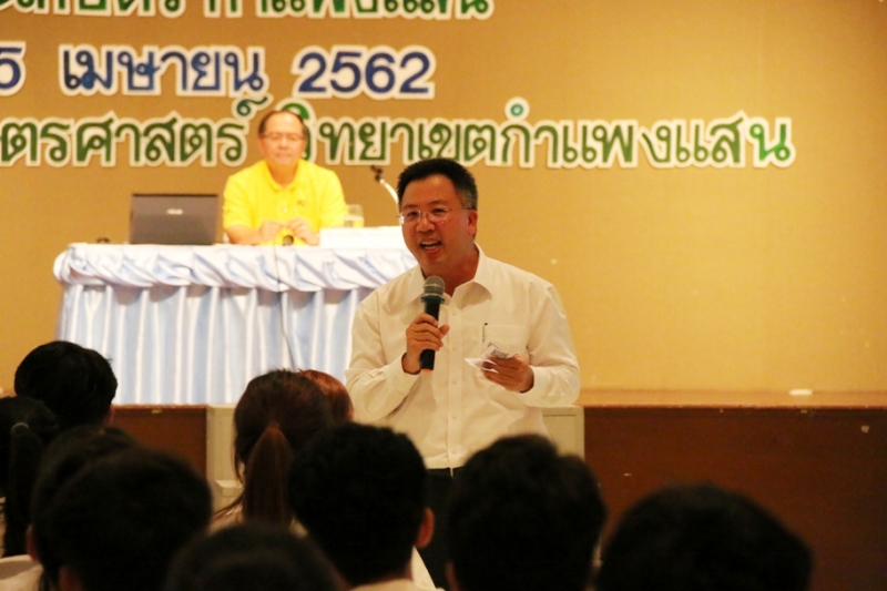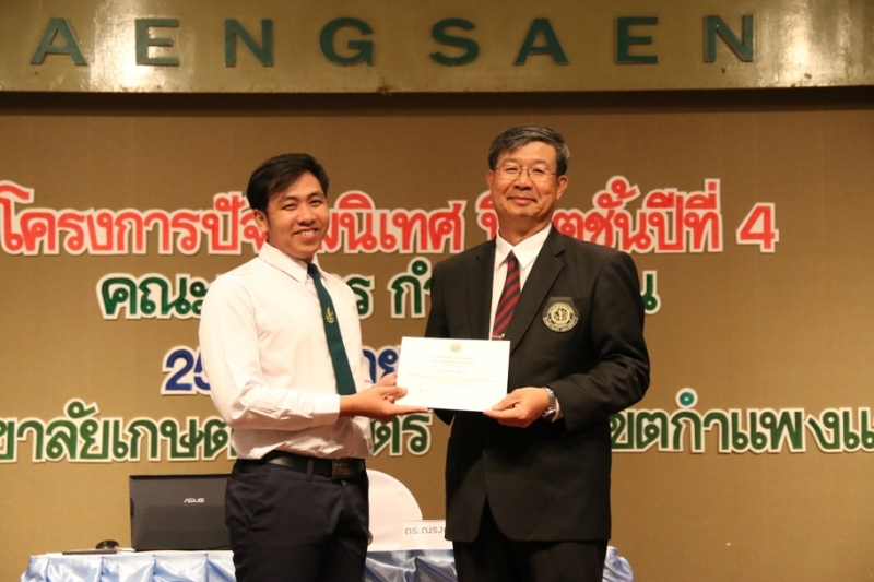วันที่ 25 เมษายน 2562 คณะเกษตร กำแพงแสน จัดโครงการปัจฉิมนิเทศ นิสิตชั้นปีที่ 4 โดย อาจารย์ ดร. ธวัชชัย อินทร์บุญช่วย ผู้ช่วยคณบดีฝ่ายสารสนเทศและพัฒนานิสิต กล่าวรายงาน และ ได้รับเกียรติจาก รศ.ดร. ปภพ สินชยกุล คณบดีคณะเกษตร กำแพงแสน กล่าวเปิดโครงการ มีการบรรยายพิเศษในหัวข้อ หลักการทำงานเพื่อความก้าวหน้าในอนาคต จาก KU รุ่นพี่ผู้ทรงคุณวุฒิ สนับสนุนโดย สมาคมนิสิตเก่าคณะเกษตร กำแพงแสน ได้แก่ ดร.ณรงค์ชัย พิพัฒน์ธนวงศ์ (KU39) และ คุณสุรพงค์ พงศ์พิสุทธา (KU43) ซึ่งเป็นอุปนายกฝ่ายบริหาร ของสมาคมฯ จากนั้นเป็นพิธีมอบเกียรติบัตรให้แก่คณะกรรมการบริหารสโมสรนิสิตคณะเกษตร กำแพงแสน พิธีบายศรีสู่ขวัญและผูกข้อมือ และรับประทานอาหารร่วมกัน ณ ห้องคอนเวนชั่น อาคารศูนย์มหาวิทยาลัยเกษตรศาสตร์ วิทยาเขตกำแพงแสน