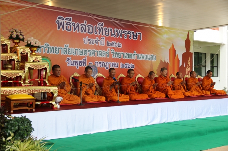 วันที่ 3 กรกฎาคม 2562 ผศ.ดร. ศุภชัย อำคา รองคณบดีฝ่ายสารสนเทศและพัฒนานิสิต พร้อมคณาจารย์ และบุคลากร ร่วมพิธีหล่อเทียนพรรษา ประจำปี 2562 ณ บริเวณลานหน้าสำนักหอสมุดกำแพงแสน ซึ่งจะนำไปถวาย ณ วัดดอนมะกอก ต.ดอนข่อย อ.กำแพงแสน จ.นครปฐม ในวันพุธที่ 10 กรกฎาคม 2562