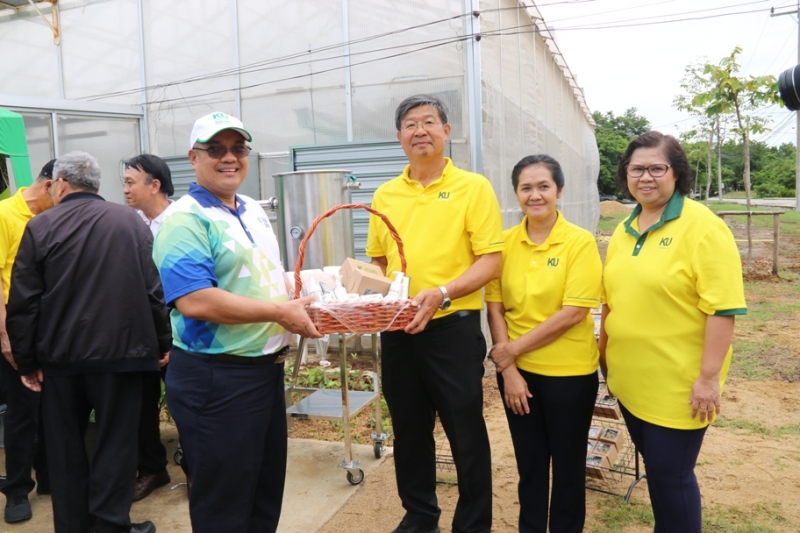 ดร.จงรัก วัชรินทร์รัตน์ รักษาการแทนอธิการบดีมหาวิทยาลัยเกษตรศาสตร์ พร้อมด้วยคณะผู้บริหาร และบุคลากร นำสื่อมวลชน จากโครงการผู้บริหาร มก. พบสื่อมวลชน ประจำปี 2562 เข้าเยี่ยมชมกิจการของคณะเกษตร กำแพงแสน ด้านผลงานวิจัย ผลงานทางวิชาการ ผลิตผล และผลิตภัณฑ์ โดยมี รศ.ดร. ปภพ สินยกุล คณบดีคณะเกษตร กำแพงแสน คณะผู้บริหาร และบุคลากรคณะเกษตร กำแพงแสน ให้การต้อนรับ เมื่อวันที่ 7 กรกฎาคม 2562 ณ เรือนเกษตรอภิรมย์ คณะเกษตร กำแพงแสน