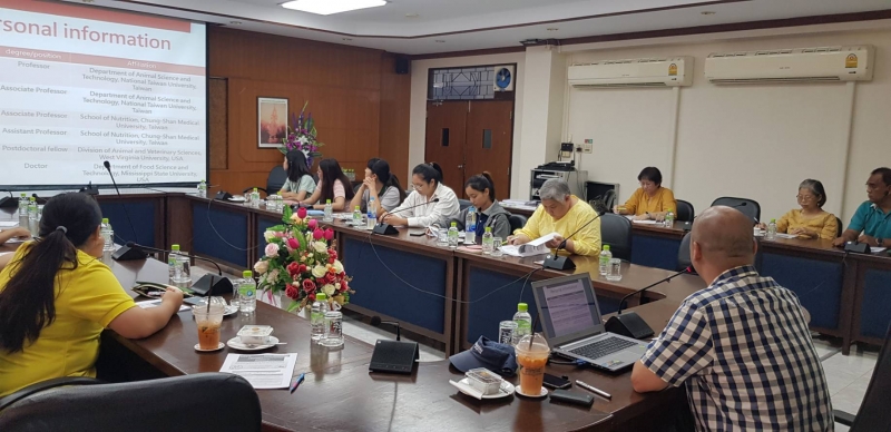 วันที่ 31 กรกฎาคม 2562 คณะเกษตร กำแพงแสน จัดกิจกรรมบรรยายพิเศษ ในหัวข้อเรื่อง Trend and Advanced Research in Poultry Processing Products for consumer ภายใต้โครงการแลกเปลี่ยนนักวิจัยในระดับนานาชาติ วิทยากรโดย Prof.Dr.Yi-Chen Chen ซึ่งเป็น Visiting Professor จาก National Taiwan University (NTU) มีคณาจารย์ บุคลากรวิจัย นิสิตระดับปริญญาบัณฑิต และนิสิตระดับบัณฑิตศึกษา เข้าร่วมจำนวน 15 คน ณ ห้องประชุม 1 (เสรี-สมพร ทรัพยสาร)