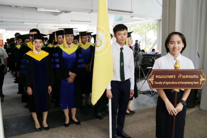 วันเสาร์ที่ 5 ตุลาคม 2562 ผู้บริหาร คณาจารย์และ บุคลากรคณะเกษตร กำแพงแสน นำบัณฑิต มหาบัณฑิต และดุษฎีบัณฑิต คณะเกษตร กำแพงแสน มหาวิทยาลัยเกษตรศาสตร์ วิทยาเขตกำแพงแสน จำนวน 416 คน เข้าร่วมโครงการฝึกซ้อมพิธีพระราชทานปริญญาบัตร ปี 2562 ทั้งนี้นายเอกราช เอกวงษ์ ได้รับคัดเลือกเป็นตัวแทนบัณฑิตในการกล่าวคำปฏิญาณตนเบื้องหน้าพระพักตร์ และนางสาวกานต์ธิดา บัวคลี่ ได้รับคัดเลือกเป็นตัวแทนบัณฑิตเข้าถวายมาลัยข้อพระกรในการรับเสด็จ สมเด็จเจ้าฟ้าฯ กรมพระศรีสวางควัฒน วรขัตติยราชนารี ในโอกาสที่ทรงเสด็จแทนพระองค์ พระราชทานปริญญาบัตรแก่ผู้สำเร็จการศึกษาจากมหาวิทยาลัยเกษตรศาสตร์ ปีการศึกษา 2562 ในวันที่ 11 ตุลาคม 2561 ณ มหาวิทยาลัยเกษตรศาสตร์ บางเขน กรุงเทพฯ
