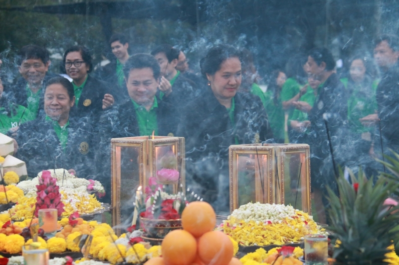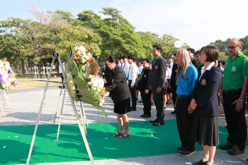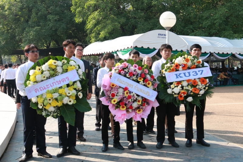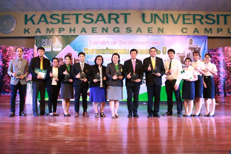 คณะผู้บริหาร นำโดย ผศ.ดร.ศศิธร นาคทอง รองคณบดีฝ่ายวิจัยและบริการวิชาการ คณะเกษตร กำแพงแสน พร้อมด้วยบุคลากร และนิสิต ร่วมงานวันสถาปนามหาวิทยาลัยเกษตรศาสตร์ วิทยาเขตกำแพงแสน ครบ 40 ปี โดยร่วมพิธีบวงสรวงพระพิรุณ พิธีตักบาตรพระสงฆ์ 40 รูป เพื่อความเป็นสิริมงคล พิธีวางพวงมาลาหน้าอนุสาวรีย์หม่อมหลวงชูชาติ กำภู ผู้ก่อตั้งวิทยาเขตกำแพงแสน ณ บริเวณสระพระพิรุณ จากนั้นร่วมรับฟังเสวนาเรื่องเล่าเมื่อวันวาน จากอดีตผู้บริหาร และพิธีมอบโล่และเกียรติบัตรให้แก่บุคลากรดีเด่น นิสิตเก่าดีเด่น และนิสิตดีเด่น ณ ห้องคอนเวนชั่น อาคารศูนย์ฯ