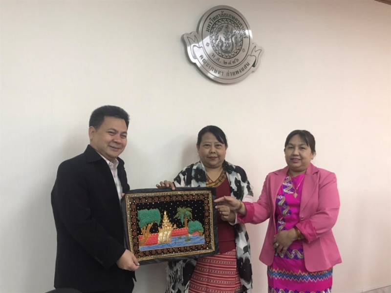 เมื่อวันอาทิตย์ที่ 8 ธันวาคม 2562 ผศ.ดร.ศุภชัย อำคา รองคณบดีฝ่ายสารสนเทศและพัฒนานิสิต คณะเกษตร กำแพงแสน พร้อมด้วยบุคลากร ให้การต้อนรับคณะผู้บริหารและอาจารย์จาก Department of Botany, University of Mandalay ประเทศเมียนม่า โดยได้ร่วมประชุมหารือเพื่อทำความร่วมมือทางวิชาการ และเยี่ยมชมนิทรรศการผลงานวิจัยในงานเกษตรกำแพงแสน 2562 ณ มหาวิทยาลัยเกษตรศาสตร์ วิทยาเขตกำแพงแสน