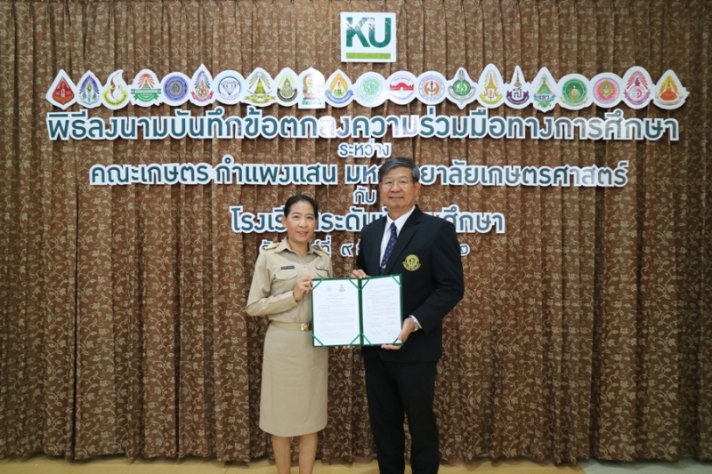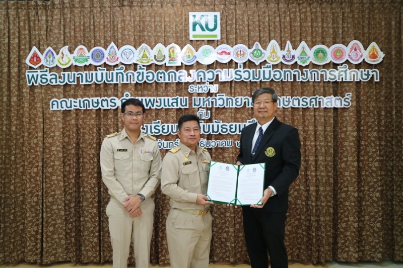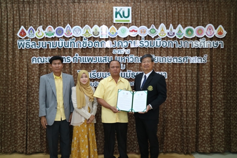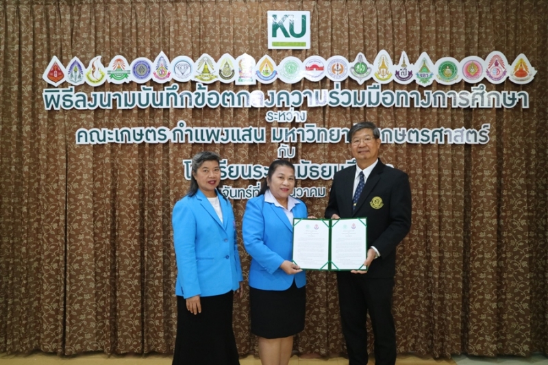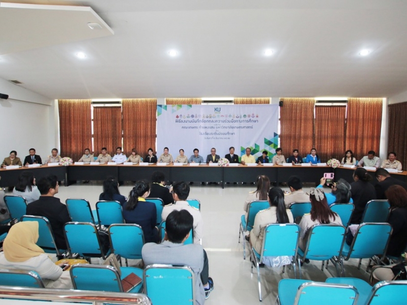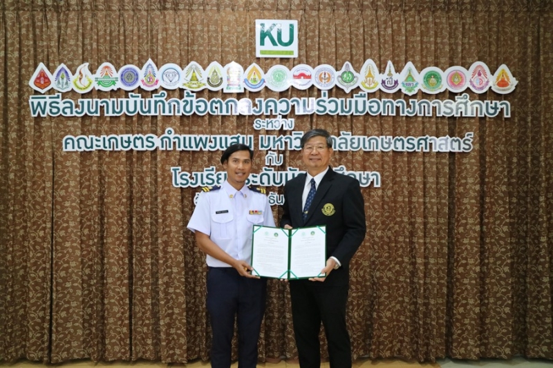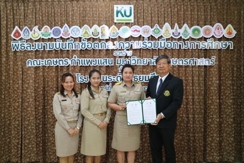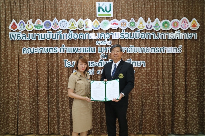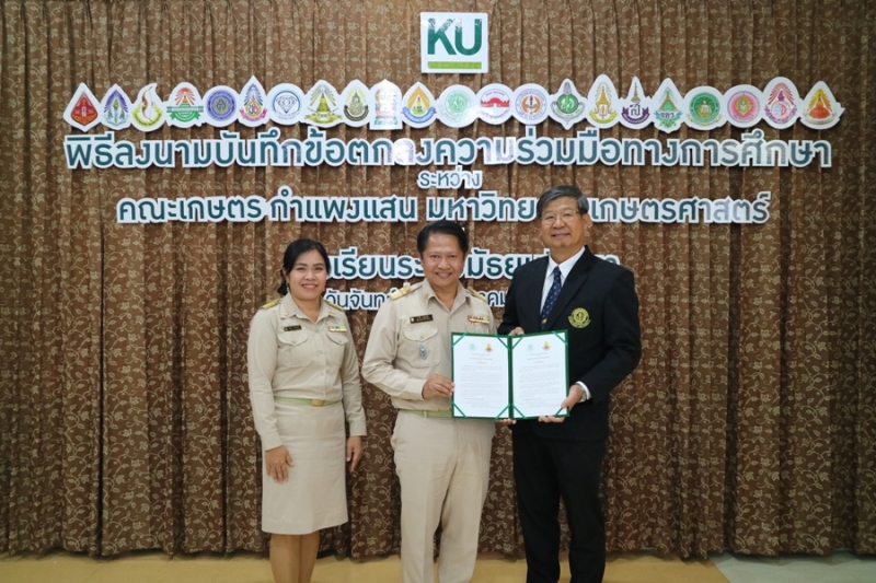 คณะเกษตร กำแพงแสน มหาวิทยาลัยเกษตรศาสตร์ วิทยาเขตกำแพงแสน จัดพิธีลงนามบันทึกข้อตกลงความร่วมมือทางการศึกษา ระหว่างคณะเกษตร กำแพงแสน โดย รองศาสตราจารย์ น.สพ.ดร.อนุชัย ภิญโญภูมิมินทร์ รองอธิการบดีวิทยาเขตกำแพงแสน รองศาสตราจารย์ ดร.ปภพ สินชยกุล คณบดีคณะเกษตร กำแพงแสน ร่วมกับ ผู้อำนวยการและอาจารย์ผู้แทนจากโรงเรียนระดับมัธยมศึกษาที่ร่วมทำข้อตกลงความร่วมมือทางการศึกษา จำนวน 21 โรงเรียน เมื่อวันจันทร์ที่ 9 ธันวาคม 2562 ณ ห้องอเนกประสงค์ คณะเกษตร กำแพงแสน มหาวิทยาลัยเกษตรศาสตร์ วิทยาเขตกำแพงแสน โดยมีรายนามโรงเรียนที่เข้าร่วมข้อตกลงความร่วมมือทางการศึกษา ดังนี้