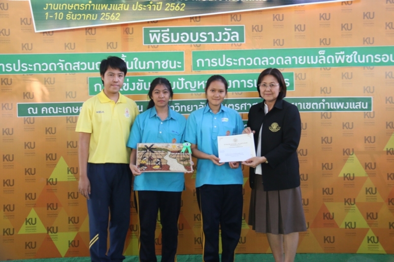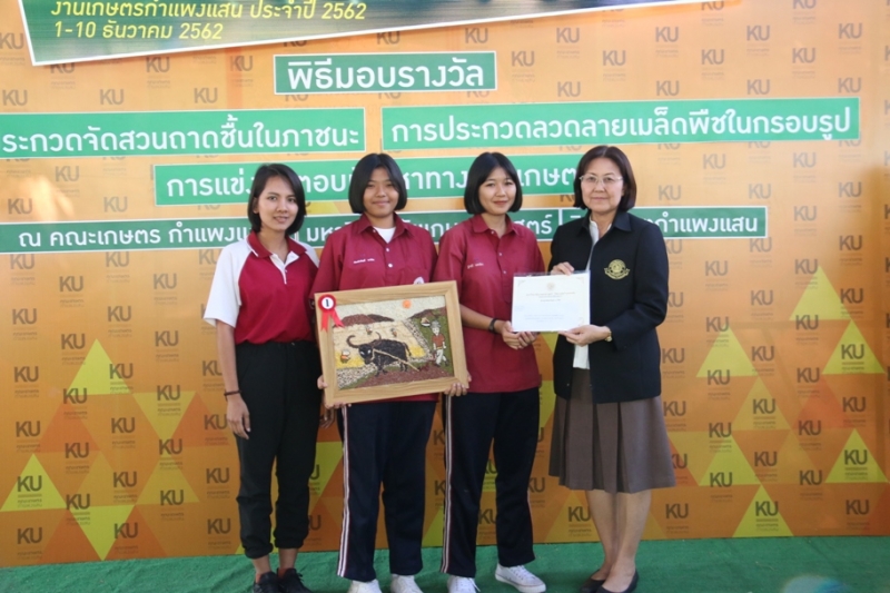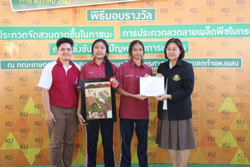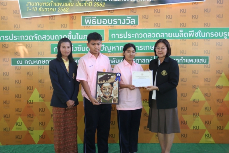 วันศุกร์ที่ 6 ธันวาคม 2562 คณะเกษตร กำแพงแสน จัดการแข่งขันการประกวดลวดลายเมล็ดพืชในกรอบรูป หัวข้อ วัฒนธรรมการเกษตร สำหรับนักเรียนในระดับมัธยมศึกษาตอนต้นและตอนปลาย มีโรงเรียนส่งนักเรียนเข้าร่วมจำนวน ....ทีม ณ คณะเกษตร กำแพงแสน ในงานเกษตรกำแพงแสน 2562