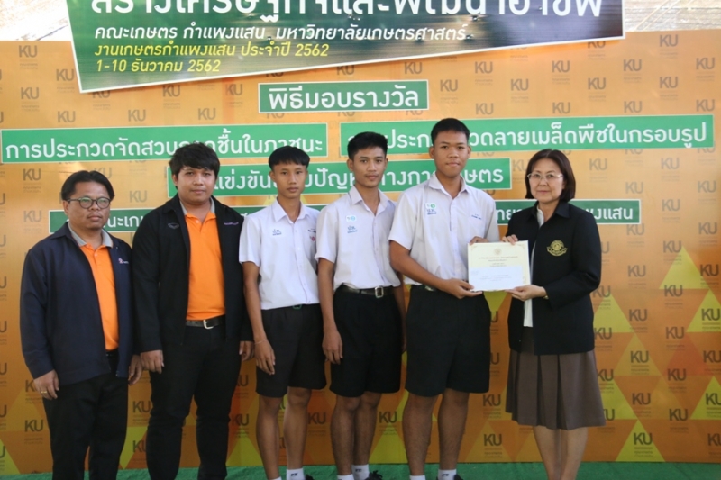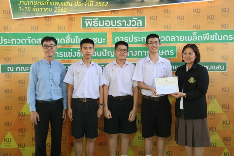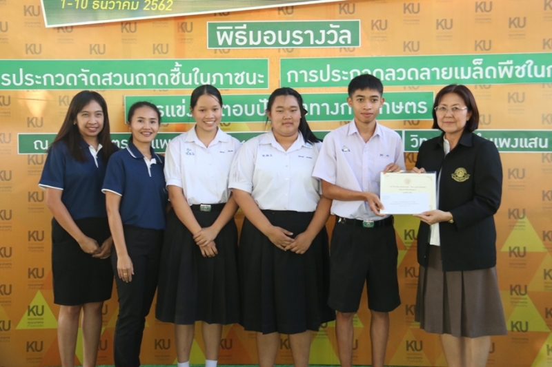 วันศุกร์ที่ 6 ธันวาคม 2562 คณะเกษตร กำแพงแสน จัดการแข่งขันตอบปัญหาทางการเกษตรสำหรับนักเรียนมัธยมศึกษาตอนปลาย หัวข้อ เกษตร กำแพงแสน สร้างสรรค์นวัตกรรม ตามรอยพ่อ สานต่อศาสตร์แห่งแผ่นดิน มีโรงเรียนส่งนักเรียนเข้าร่วมจำนวน ....ทีม ณ คณะเกษตร กำแพงแสน ในงานเกษตรกำแพงแสน 2562